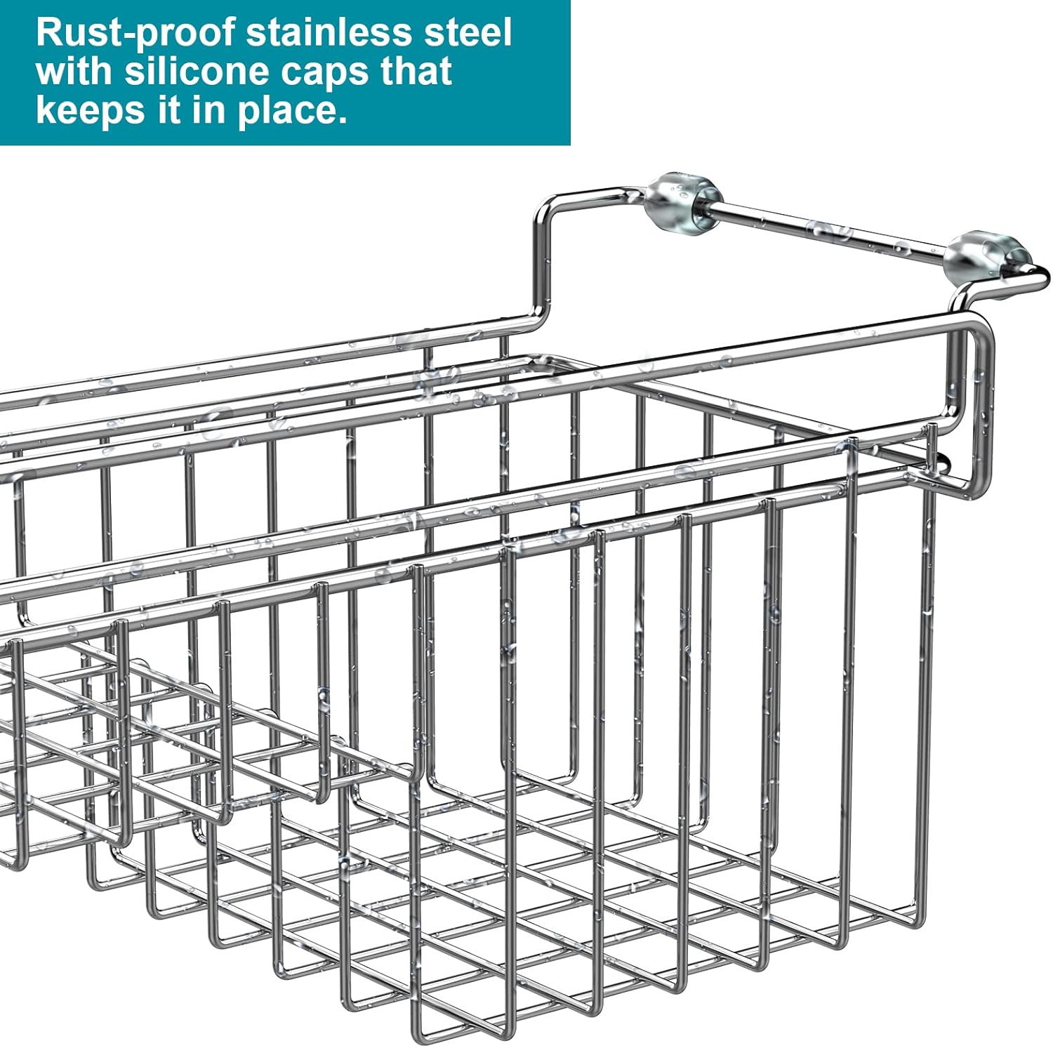 Over The Kitchen Sink Caddy Sponge Holder Organizer Drying Rack Expandable for Sponge Brush Soap Dish Cloth Rag 14.5" to 22", Stainless Steel