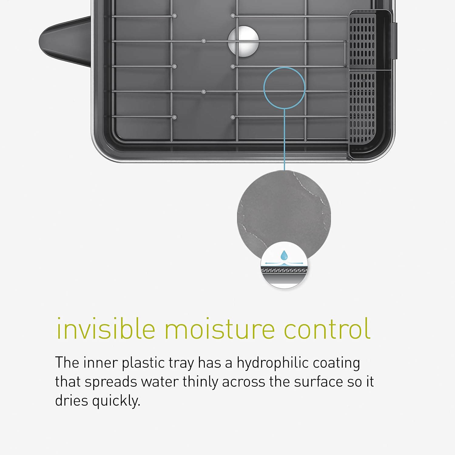 simplehuman Compact Dish Drying Rack with Stainless Steel Frame, 360º Easy Drain Swivel Spout, Utensil Holder, Anti-Residue Coating, Moisture Control Surface, Grey