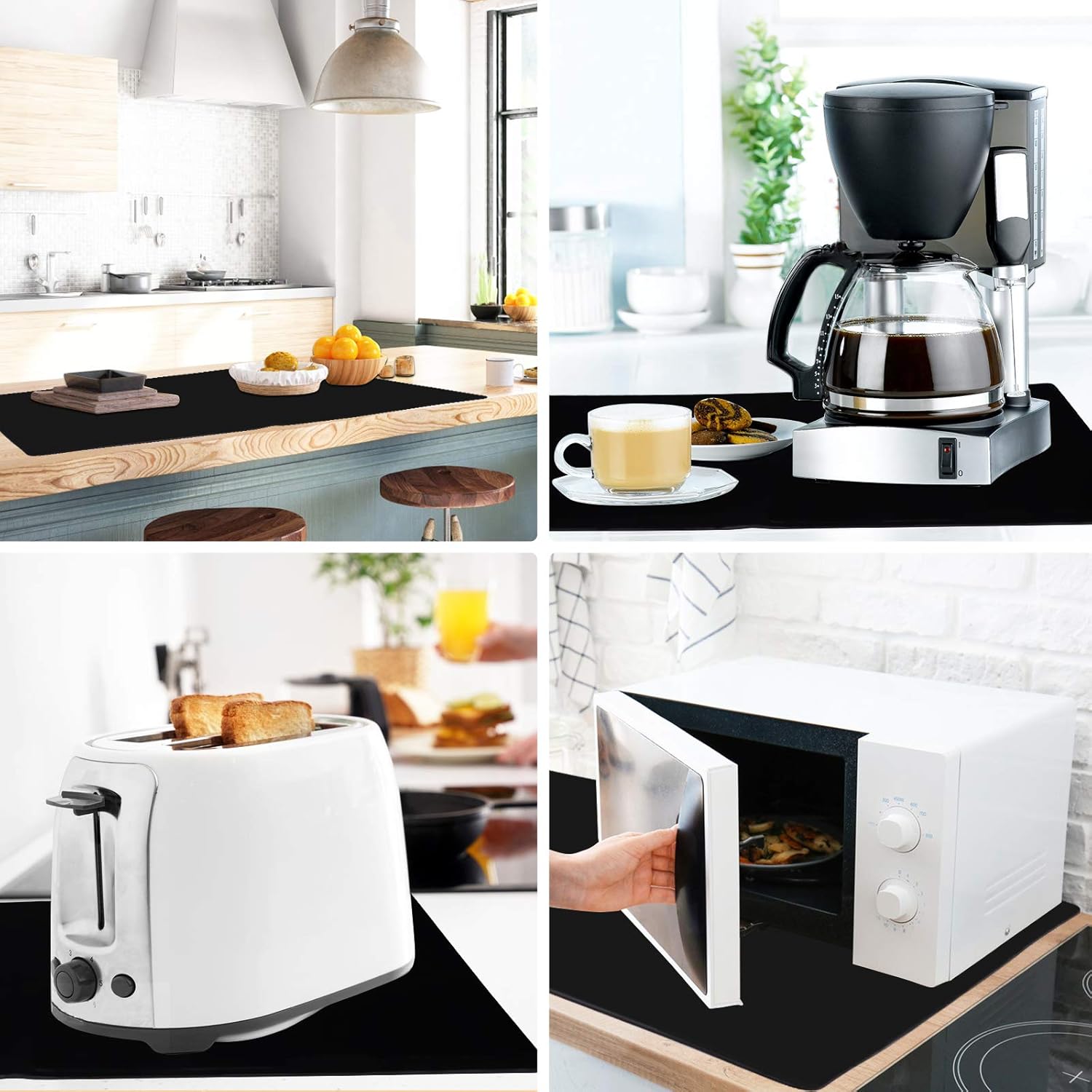 - Size :Sized at 28" x 20"x 0.06"(Length x Width x Thickness), large enough to protect your counter top, it can be placed under the microwave, air fryer, induction stove, toaster oven, coffee maker etc.