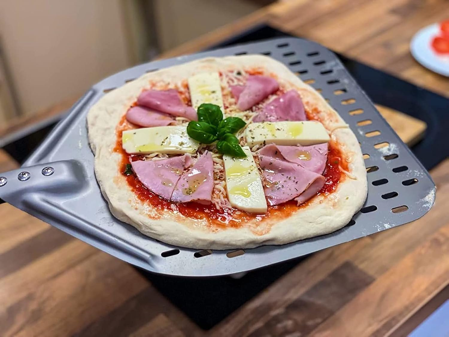 - LAUCH PIZZA EASILY: Pizza peel features perforations that reduce friction and allows for excess flour to fall off easily. Cooperated with its slightly beveled edge, makes it easier to slide the pizza into and out of the oven.