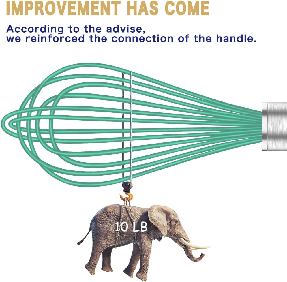 - STRONG AND SAFE: professional rubber whisks are resistant to heat up to 450 degrees Fahrenheit, making them ideal for cooking almost any favorite food. BPA-free silicone design is highly resistant to bacterial growth and stains