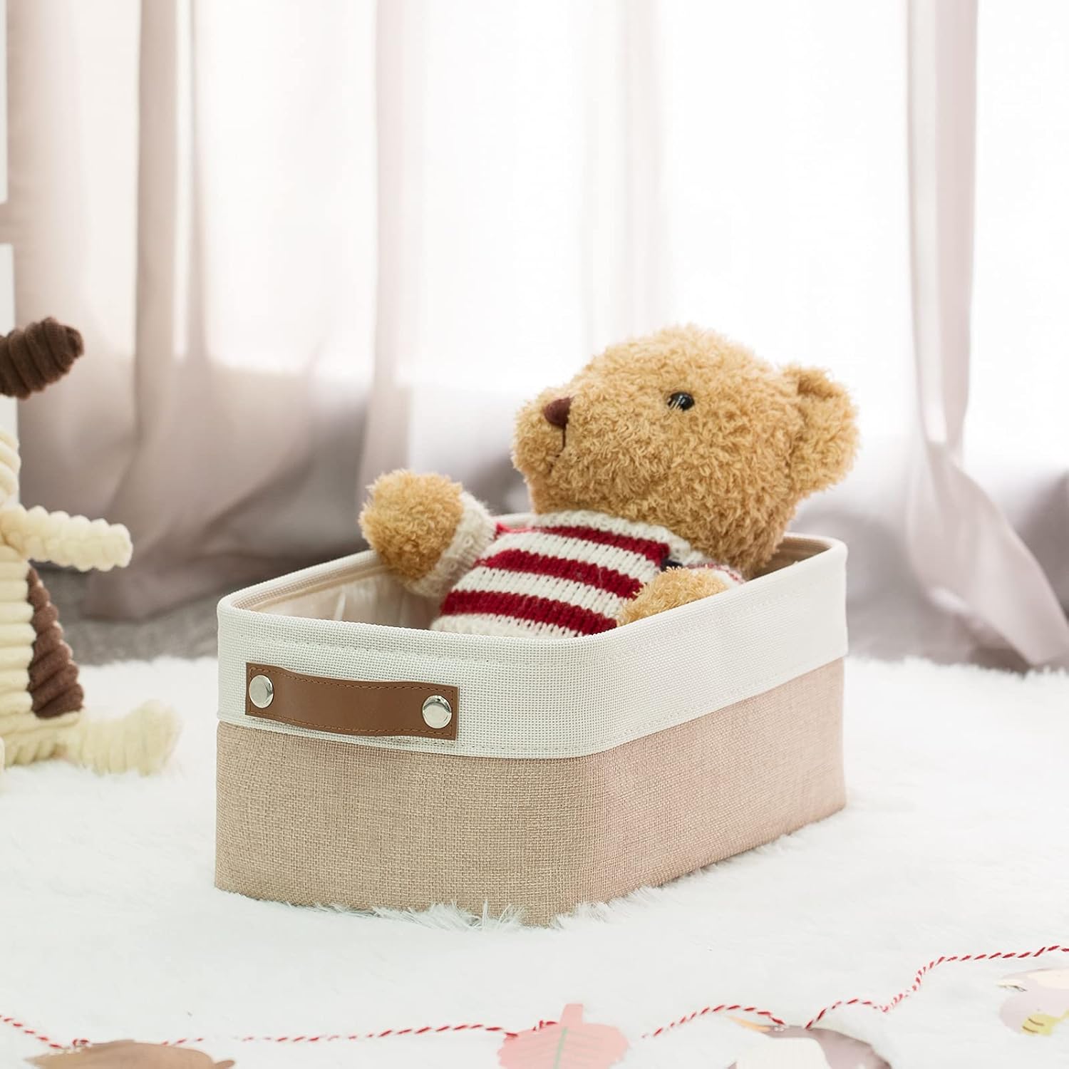 HNZIGE Small Fabric Baskets for Organizing(6 pack) Collapsible Storage Baskets for Shelves, Closets, Laundry, Nursery, Decorative Baskets for Gifts Empty (White&Khaki, 11.8" x 7.8" x 5.1")