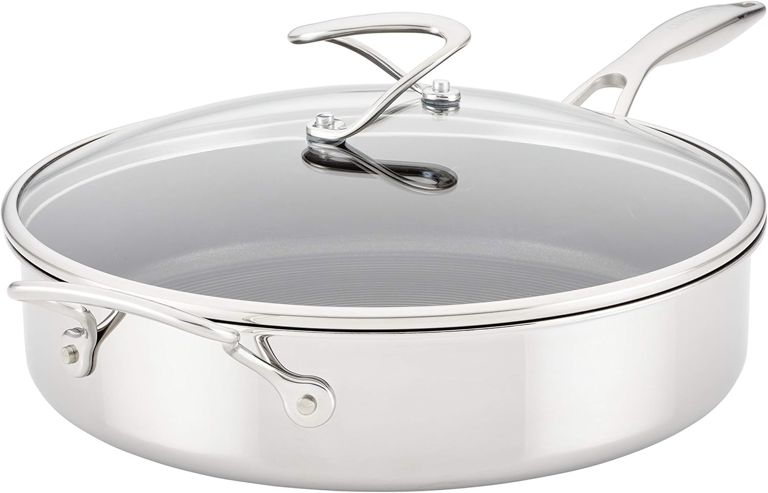 - WHAT YOU GET: Circulon hybrid clad stainless steel 5-quart saute pan with lid