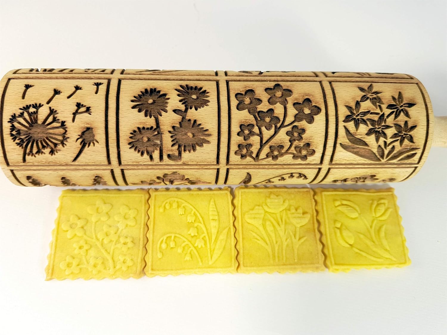 - Handcrafted in Europe, the beautiful SPRING FLOWERS Engraved Rolling Pin features deep, clearly defined floral emboss rolling pin engravings to create stunning home-baked goods, crafts & pottery!