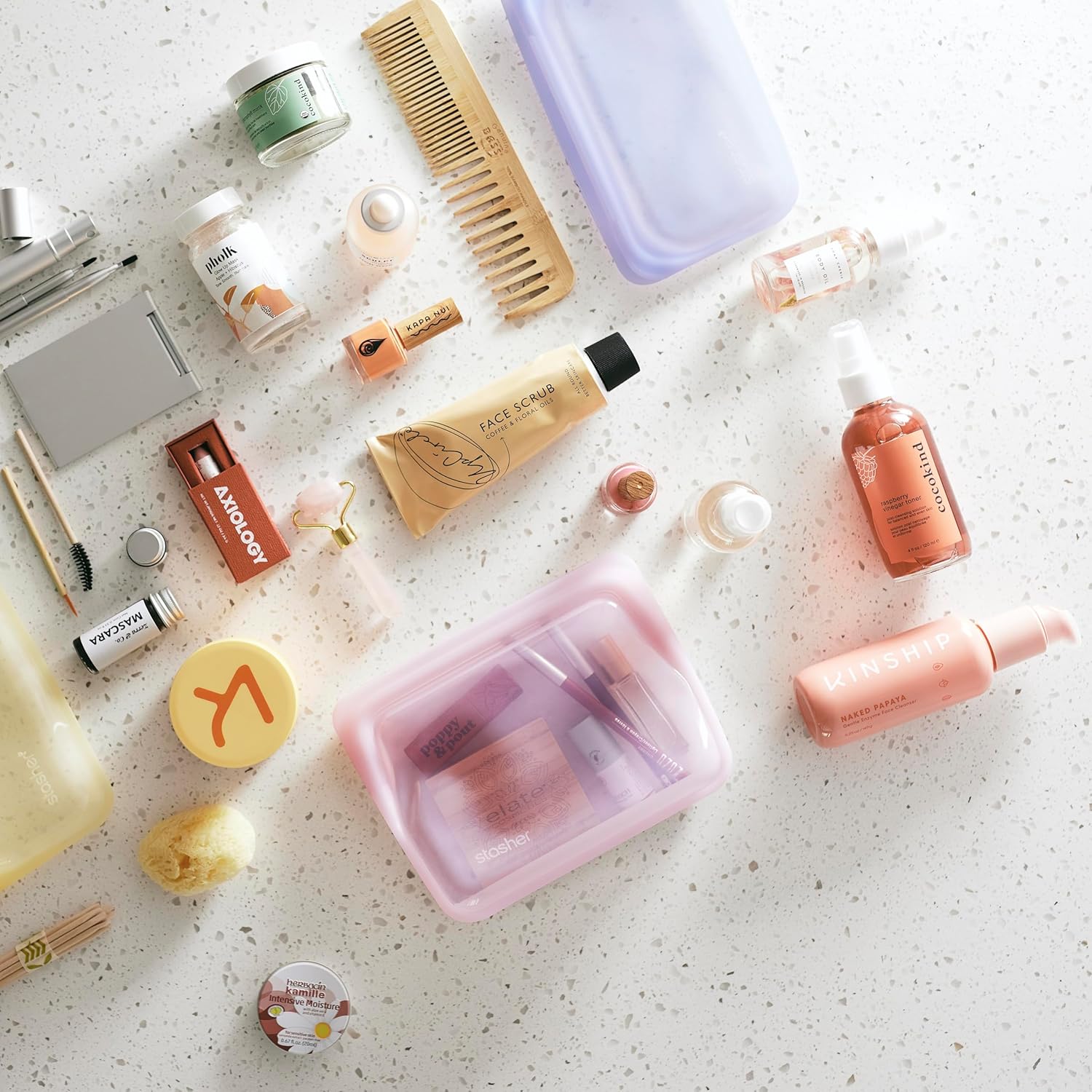Stasher Premium Silicone Reusable Food Storage Stand-Up Mini Bag, Pink, Microwave, Sous Vide, Dishwasher, Oven and Freezer Safe, BPA Free, Leak-free, Eco-friendly, 28 Oz