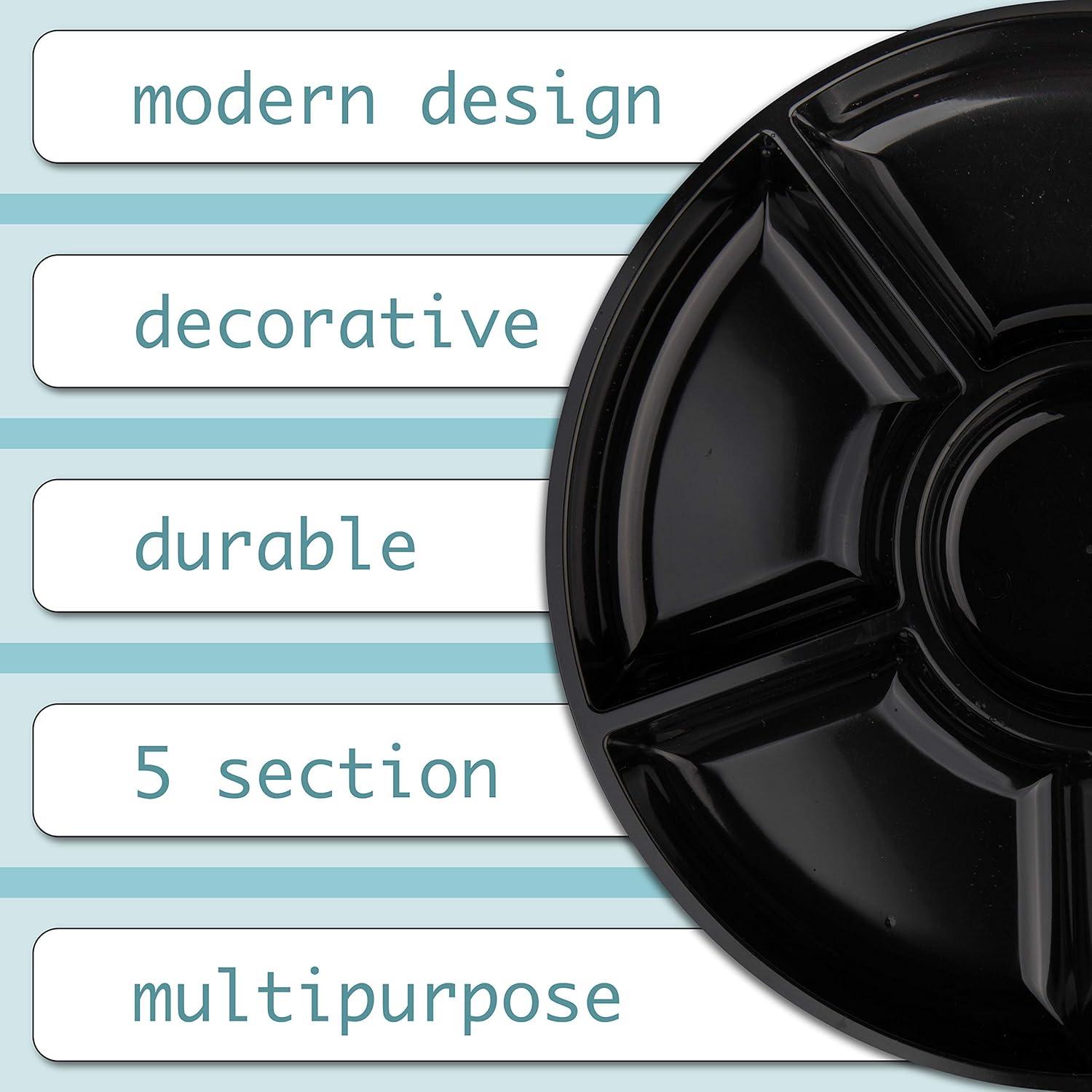 Plasticpro 6 Sectional Round Plastic Serving Tray/Platter (2, Black)
