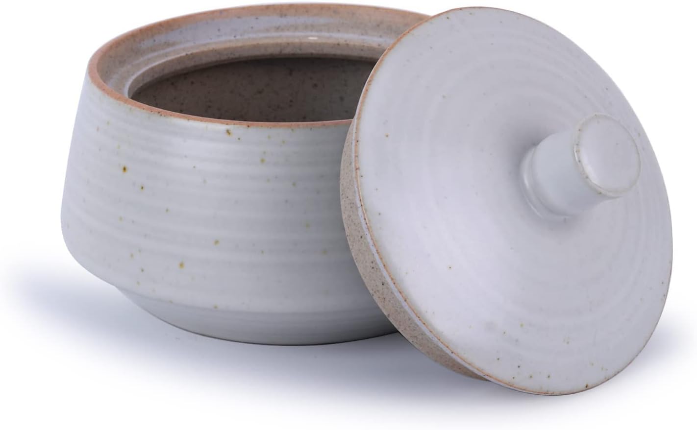 - 【SUITABLE CAPACITY】: About 13.53 OZ(400ml), Dimensions - 4.40 inches in diameter, 3.35 inches in height. Small and Exquisite Ceramic Food Storage Jar.
