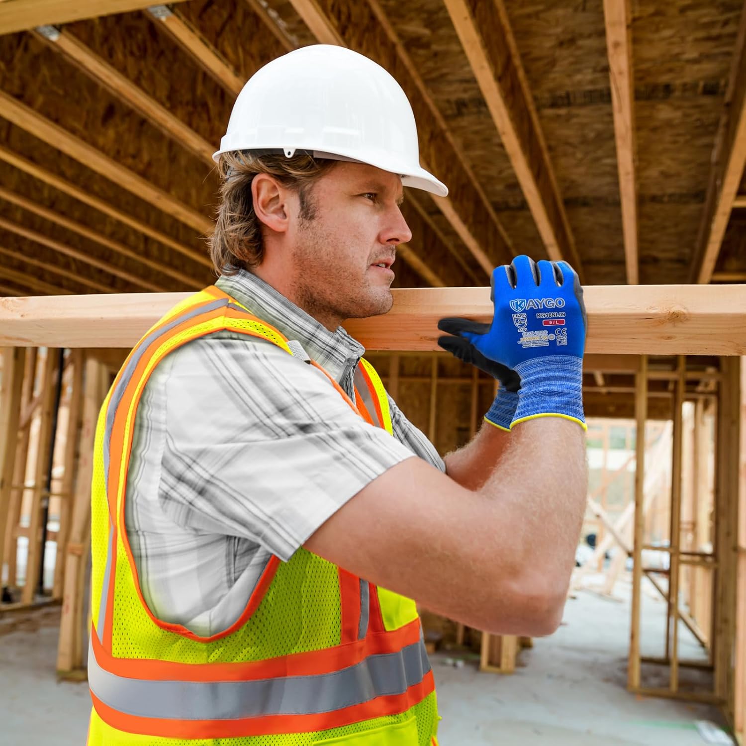KAYGO Safety Work Gloves MicroFoam Nitrile Coated, 12 Pairs KG18NB,Seamless Knit Nylon Glove with full fingers Touchscreen, Ideal for Automotive,Warehouse,Construction (Large, Blue)