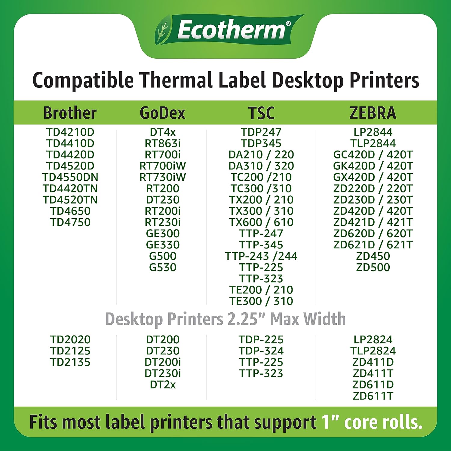- Compatible with Zebra Printers: ZD410, ZD411, ZD421, ZD620, ZD621, GC420, GK420, GX430, LP2844, ZP500.