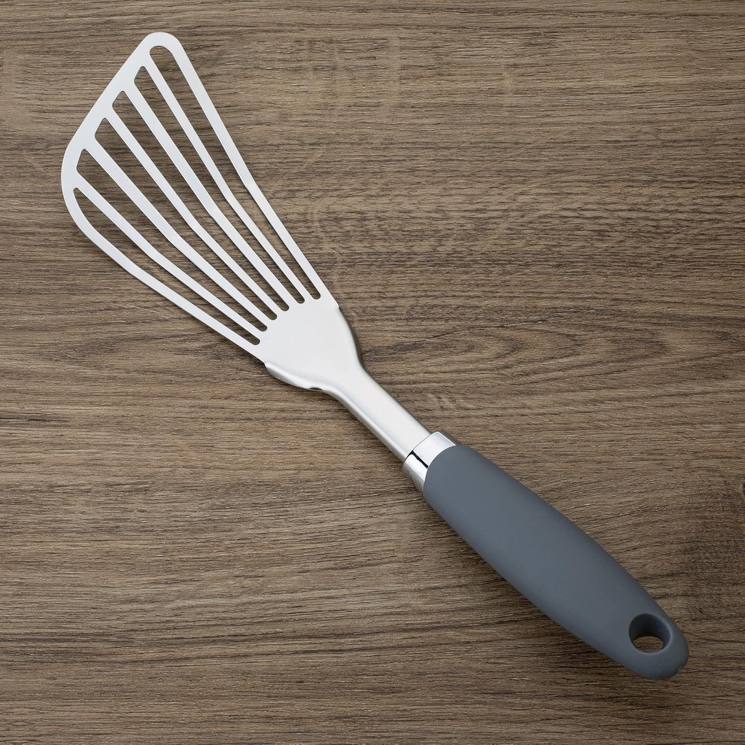 304 Stainless Steel Fish Spatula, Non-Slip Ergonomic Handle Slotted Spatula, Grey