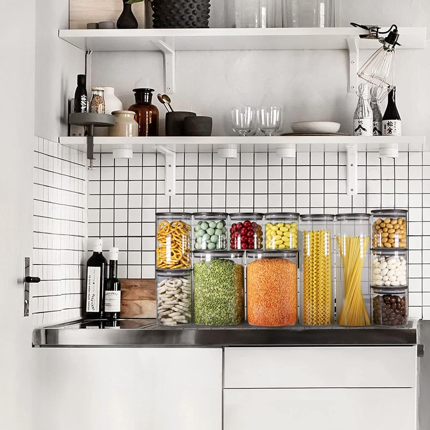 - ✅ MULTIPLE PURPOSE OF USE: These air-tight kitchen canisters are specially designed in different heights and quantity pack combo for multiple purpose of use. All of them are stackable for space saving storage, the silicone ring makes the bamboo lid close tightly, which ensures inside food dry and fresh for much longer time.