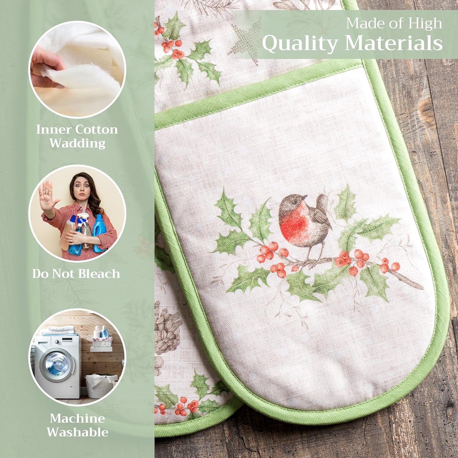 Maison d' Hermine Double Oven Mitts 100% Cotton 7"x35" Double Oven Mitt Heat Resistant BBQ Cooking Gloves with Loop, Baking, Grilling, Home, Kitchen, Handling Hot Pans (Christmas Dew)