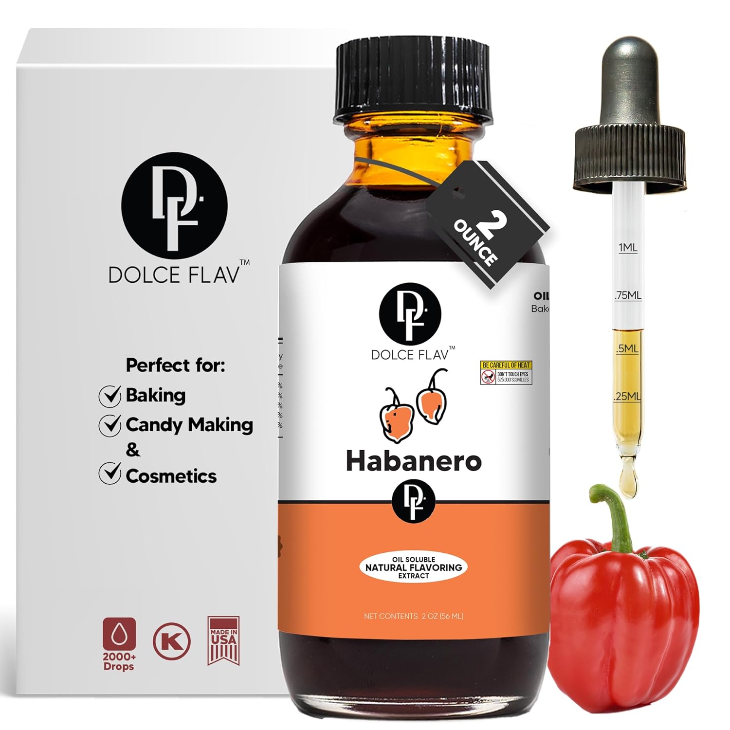Dolce Flav Natural Habanero Extract (Oil-Soluble) 2 oz – Kosher, Sugar-Free, Concentrated Spicy Habanero Flavoring for Savory Dishes, Sauces & Confections, Includes Measured Dropper
