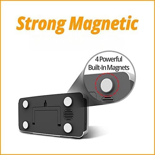 - [Place Your Timer Anywhere You Need It] Features 4 powerful built-in magnets, allowing it to stick to any metal surface without slipping, and a hole for hanging it up. It also comes with a stand, making it easy to place on desks, kitchen counters, or the floor.