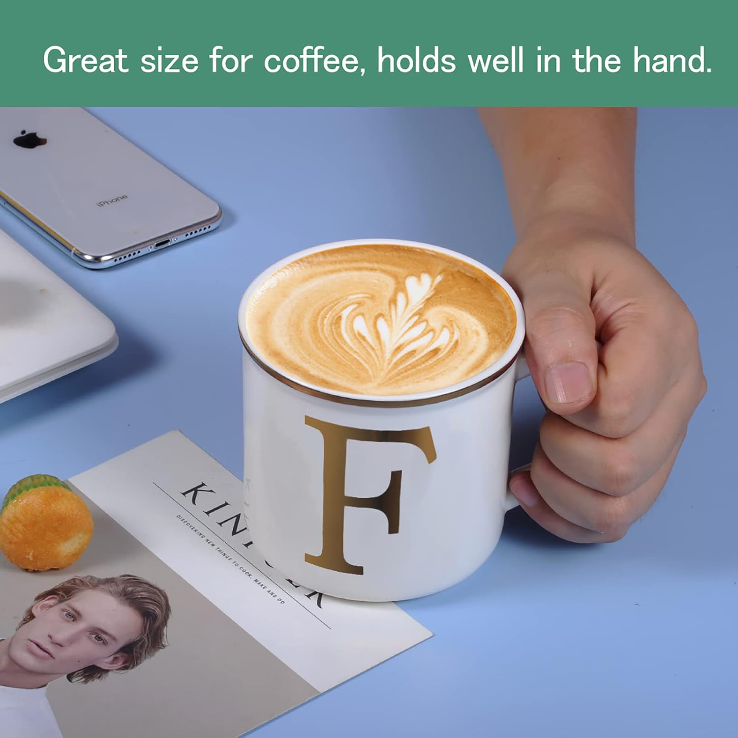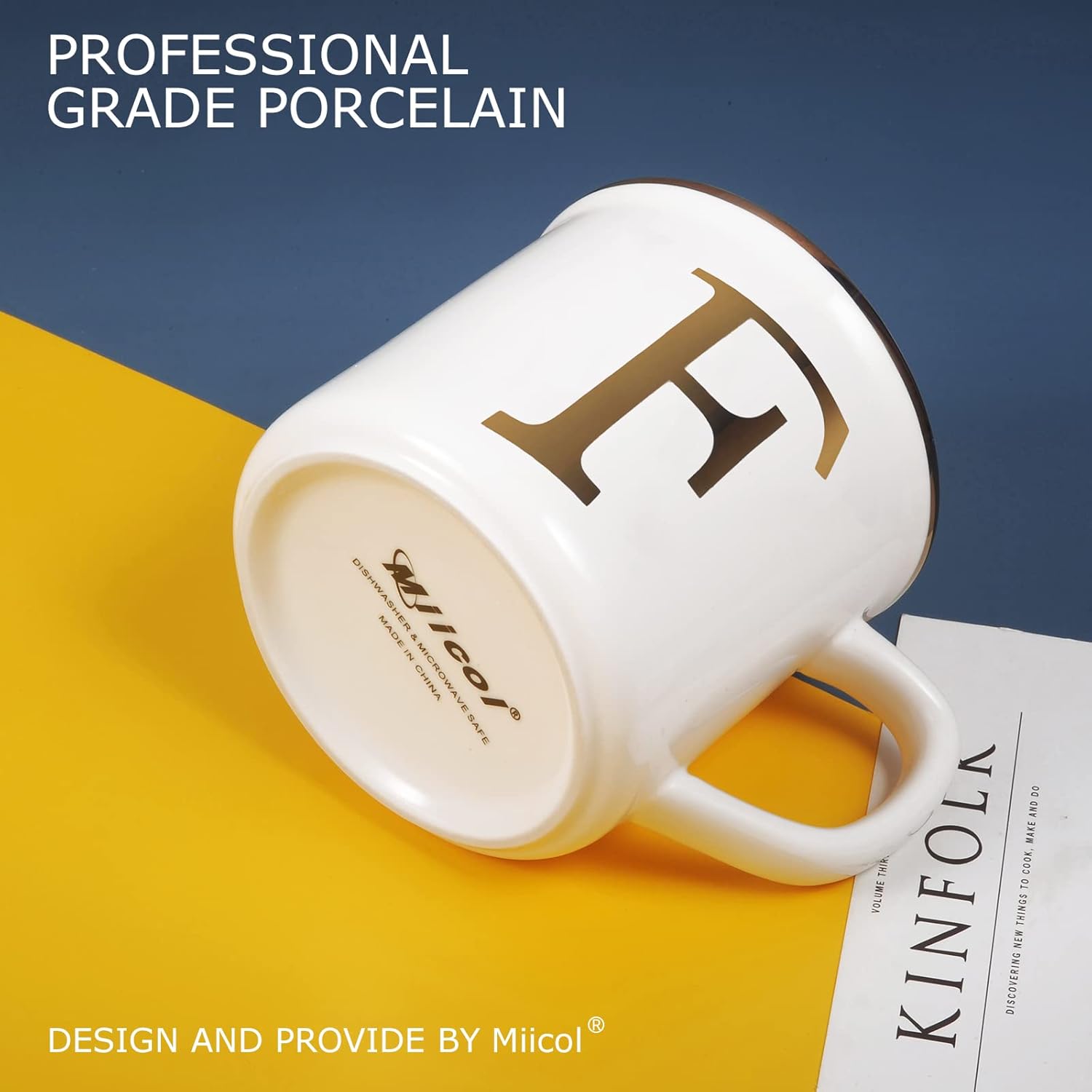 Miicol Ceramic Coffee Mug 16 oz, Monogram Coffee Cup, Golden Initial Tea Mug, Personalized Tea Cup, Unique Gift, Large Mug for Home, Office, Letter F