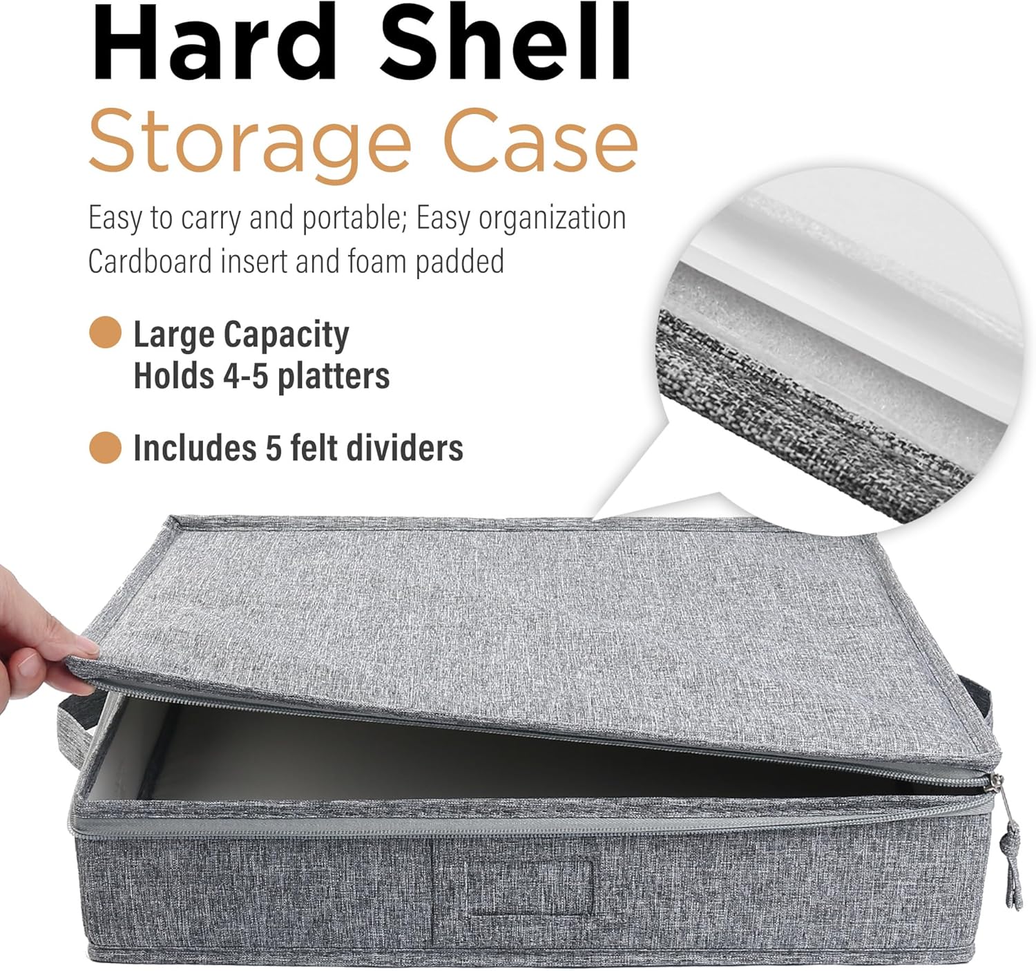 LotFancy Platter Storage Case, Hard Shell, China Storage Container for Moving, 17x13x3.5 in, 5 Felt Dividers Included