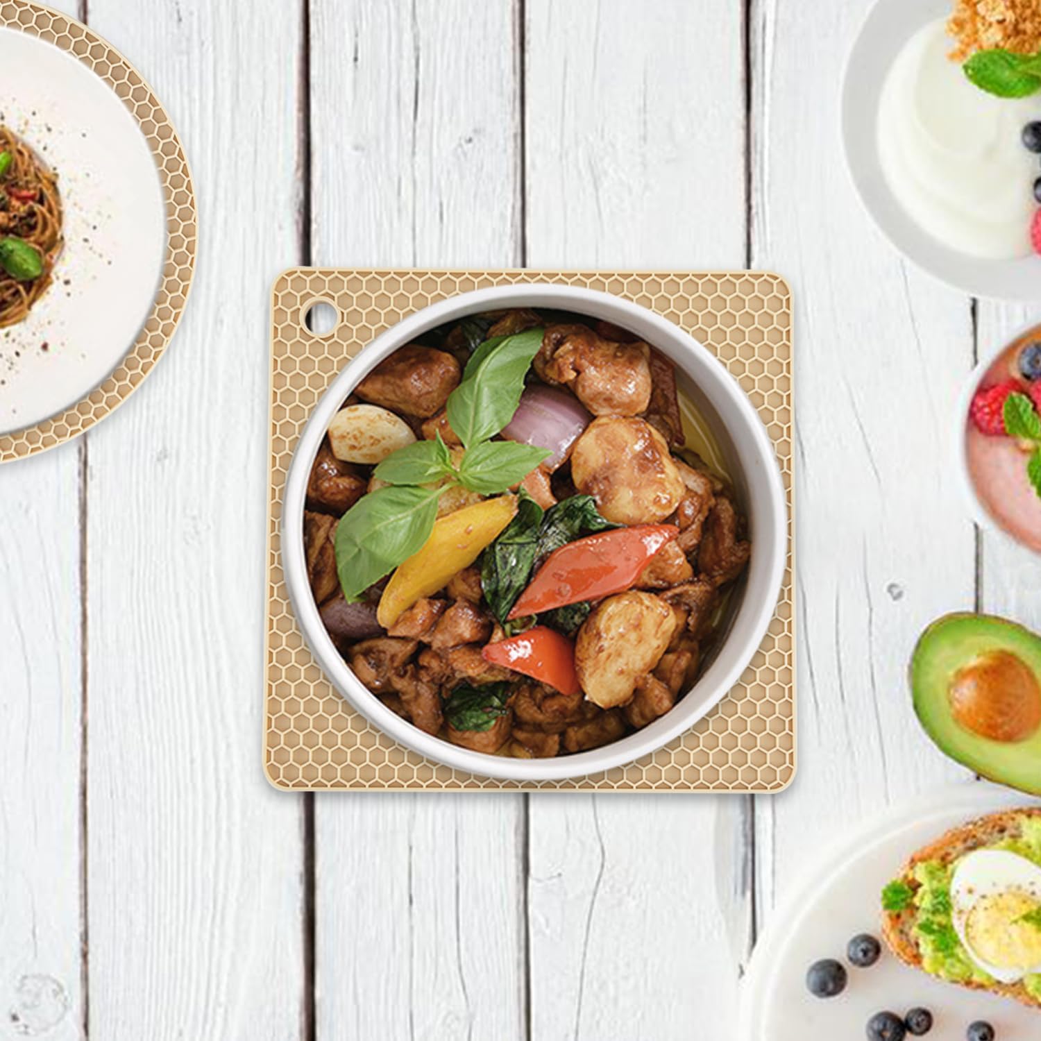 - 🥘Non-Slip & Hanging Storage- Because of the honeycomb pattern, they grip surfaces well, keeps items from sliding around. And there are holes in each mat for easy hanging and storage.
