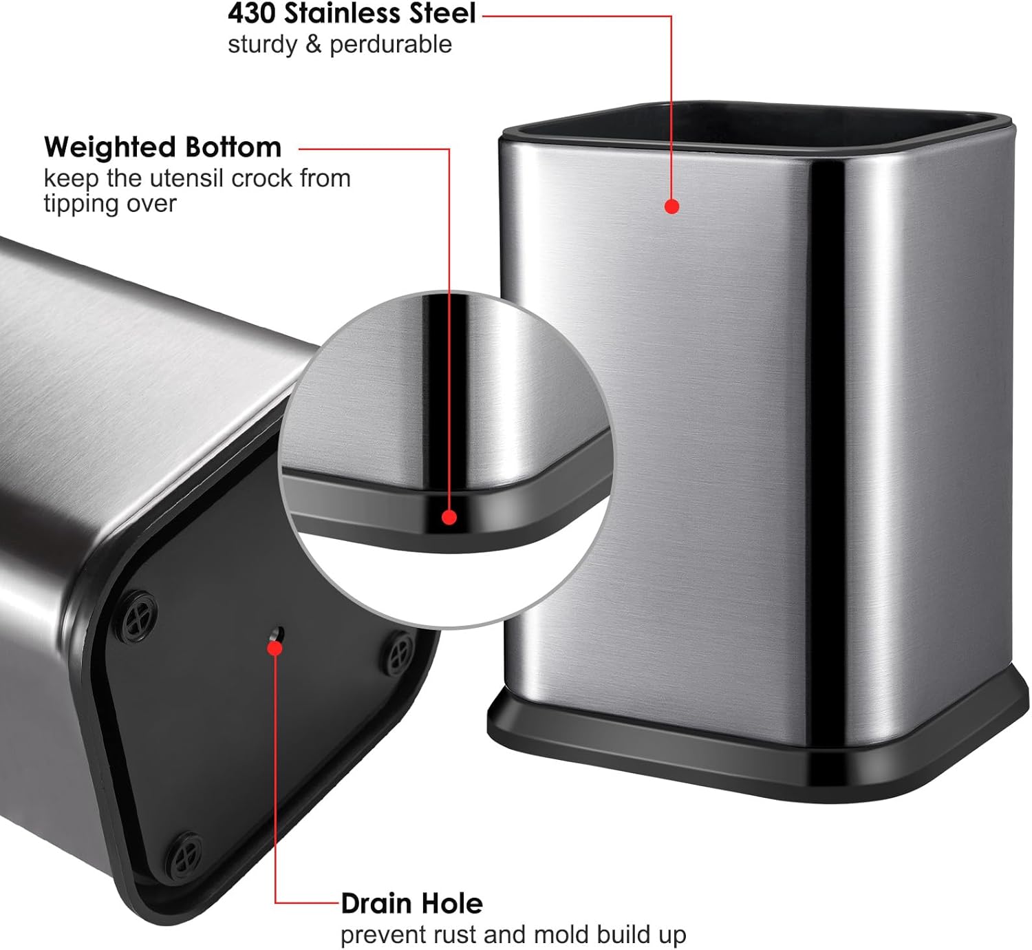 - MODERN DESIGN: Silver color is absolutely modern and all-match, extra thick stainless steel for metal heavy-duty, sturdy and has good durability; It's a fashion and modern kitchen utensil organizer on your counter.
