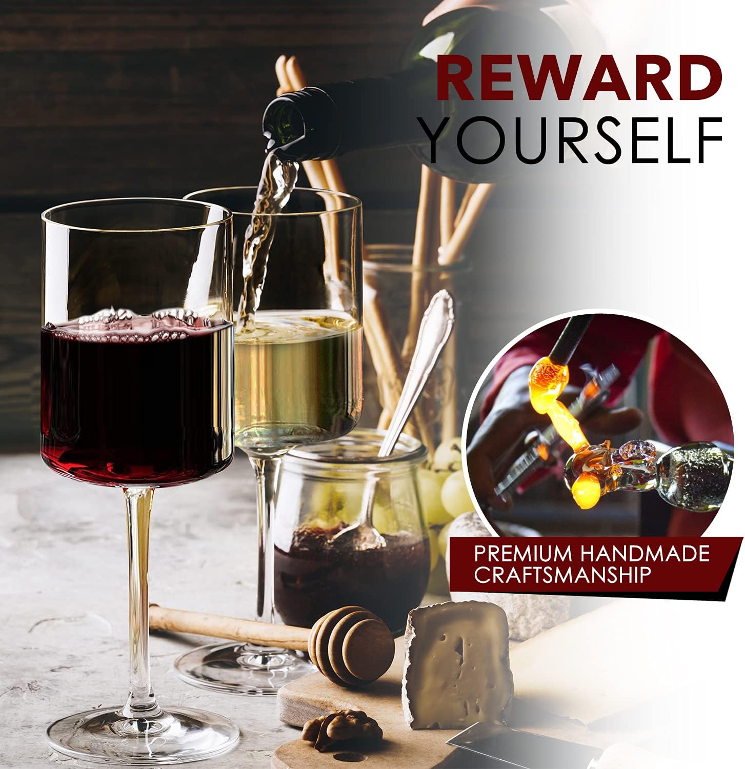 Chouggo Square Wine Glasses Set of 6, Hand Blown Crystal Red Wine or White Wine Glass 11.4Oz - Hand Crafted by Artisans - Gifts for Women, Men, Wedding, Anniversary, Christmas, Birthday