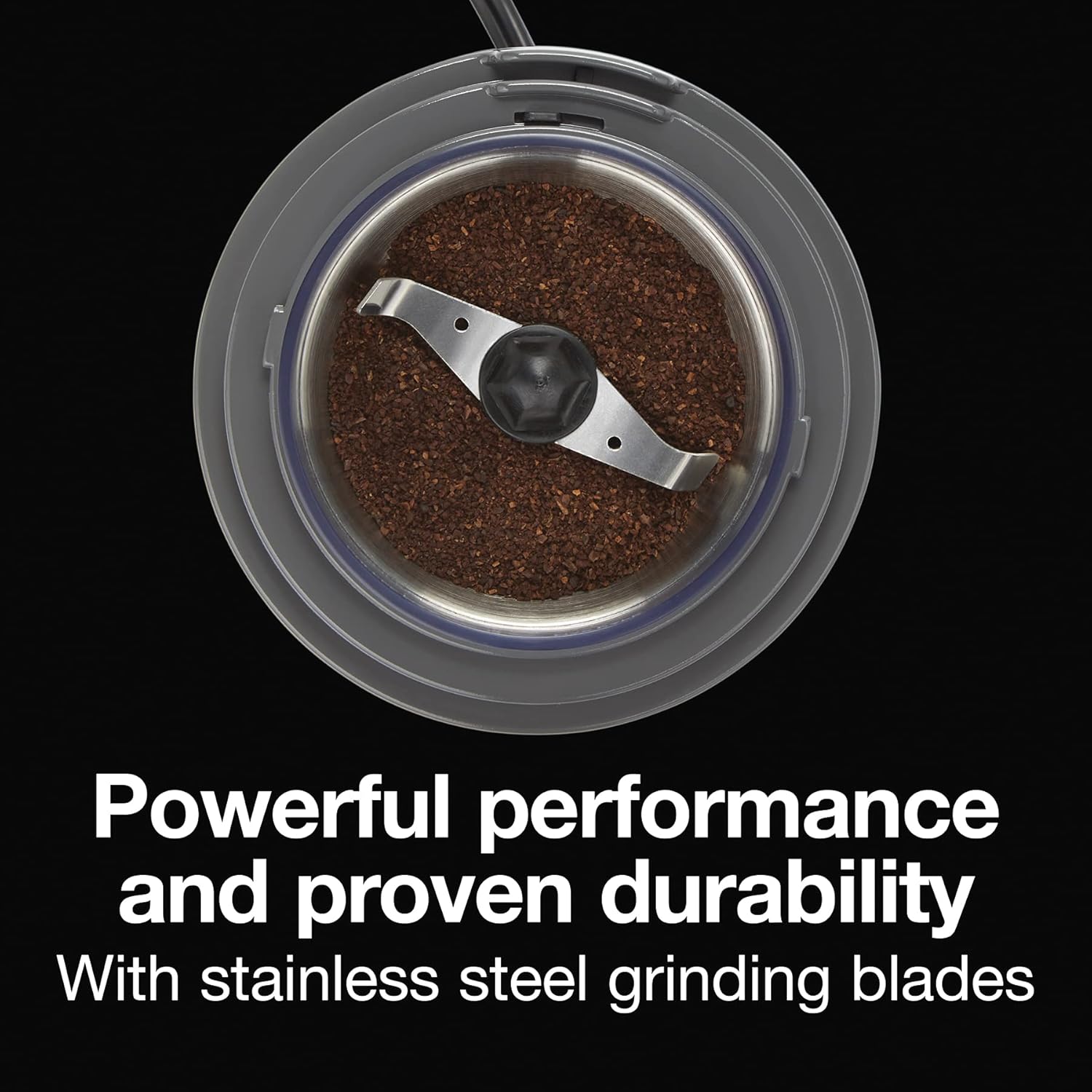 - POWERFUL PERFORMANCE AND PROVEN DURABILITY: The grinding blades on this small coffee grinder are made of durable stainless steel to grind coffee for brewing cup after delicious cup for years to come.
