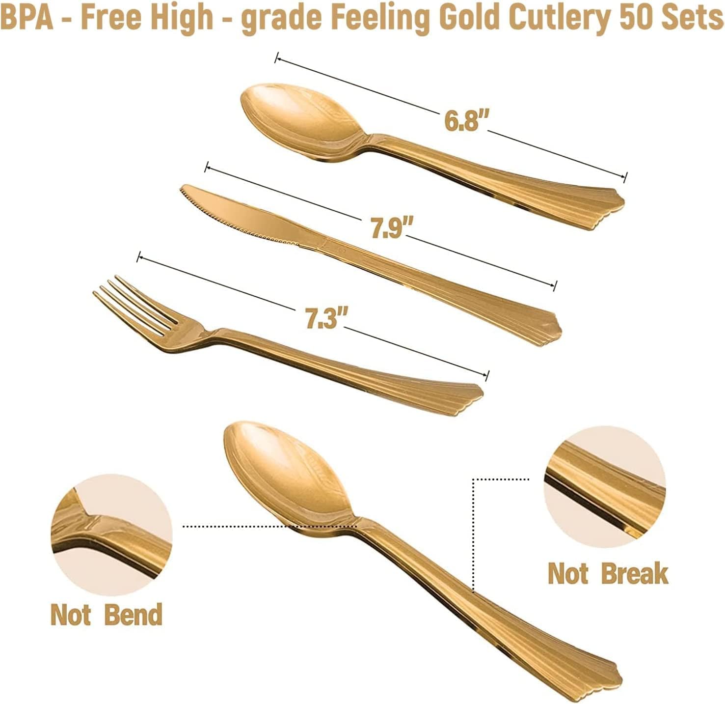 - âăHigh Quality & Elegant Festive Designă:This party supplies pack is designed to light blue background and golden foil polka dot pattern, Bring high-end and elegant atmosphere to your party. All the products are made of BPA Free, non-toxic and tasteless plastic. They are very strong. The plates, knives, forks and spoons will not bend, break. Bright color, high-grade feeling.