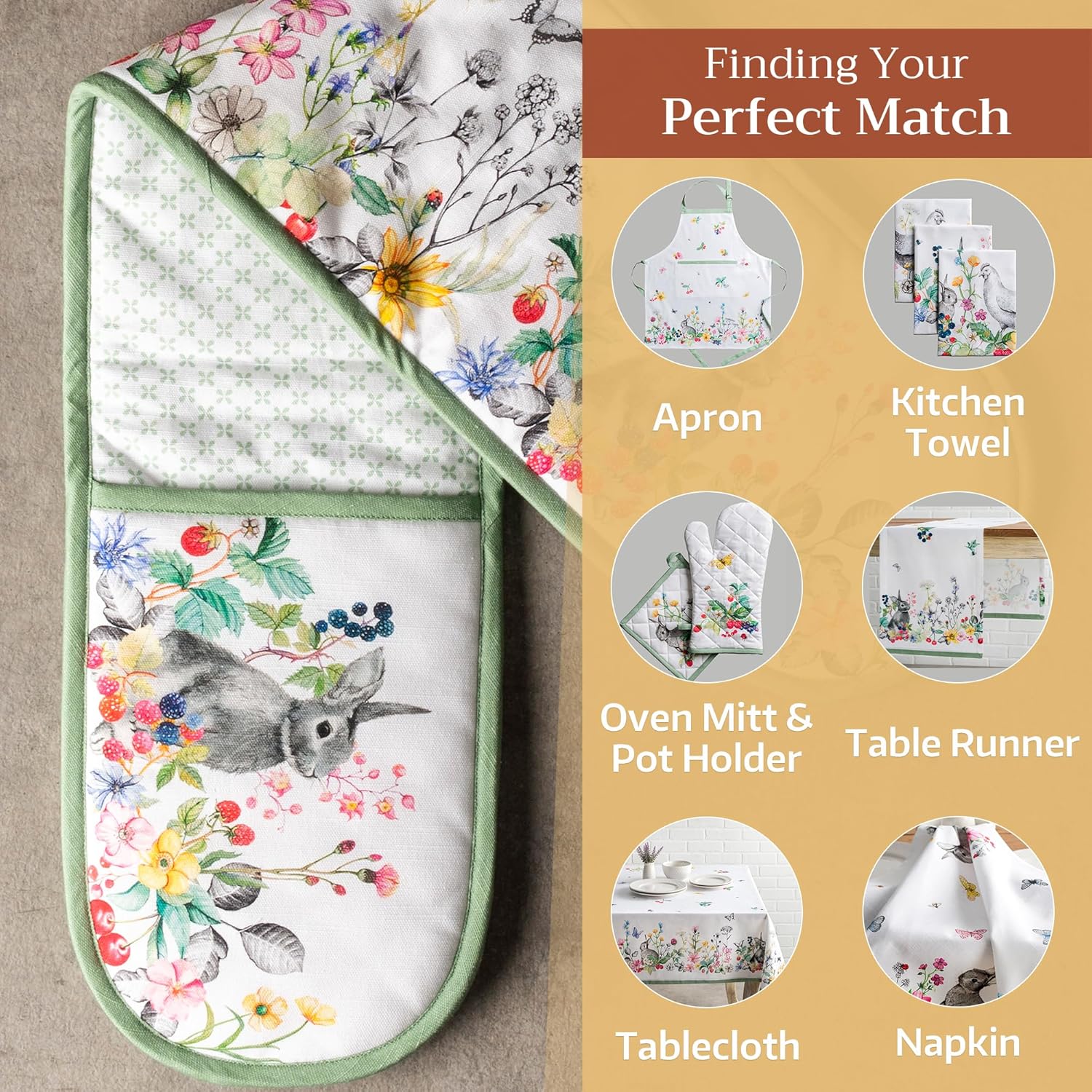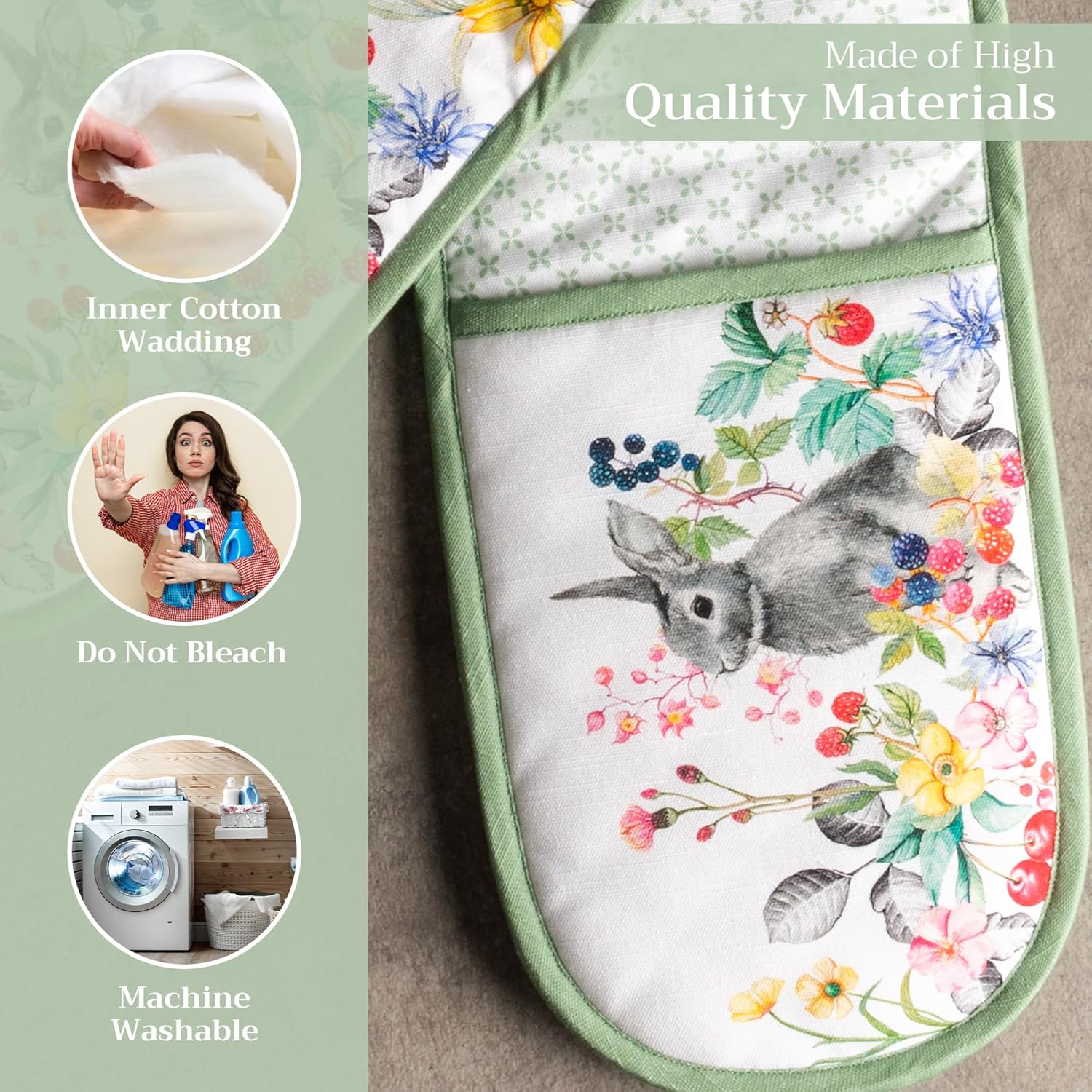 - 100% Quilted cotton: Crafted from premium quilted cotton for superior heat resistance and durability. This double oven mitt offers a soft, flexible grip and protects your hands during baking, roasting, or grilling