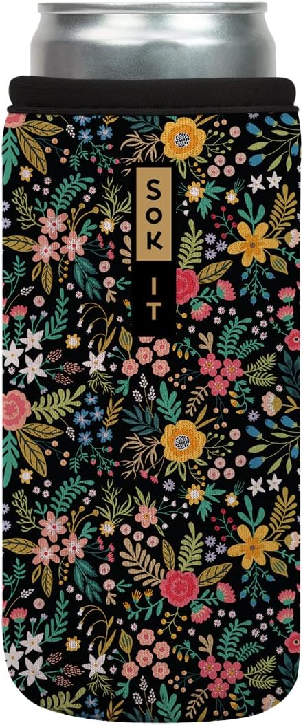 Sok It CanSok Sleeve for Beer & Soda Insulated Neoprene Cover (English Garden Picnic, 12oz Slim Can Sleeve)