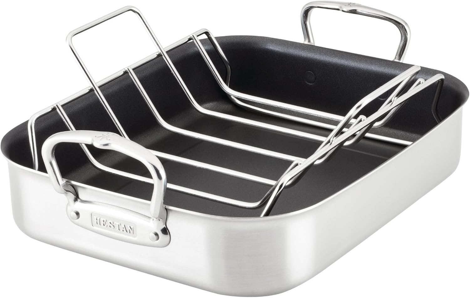 Hestan Provisions – 14.5" Classic Clad Nonstick Roasting Pan with Stainless Steel Rack