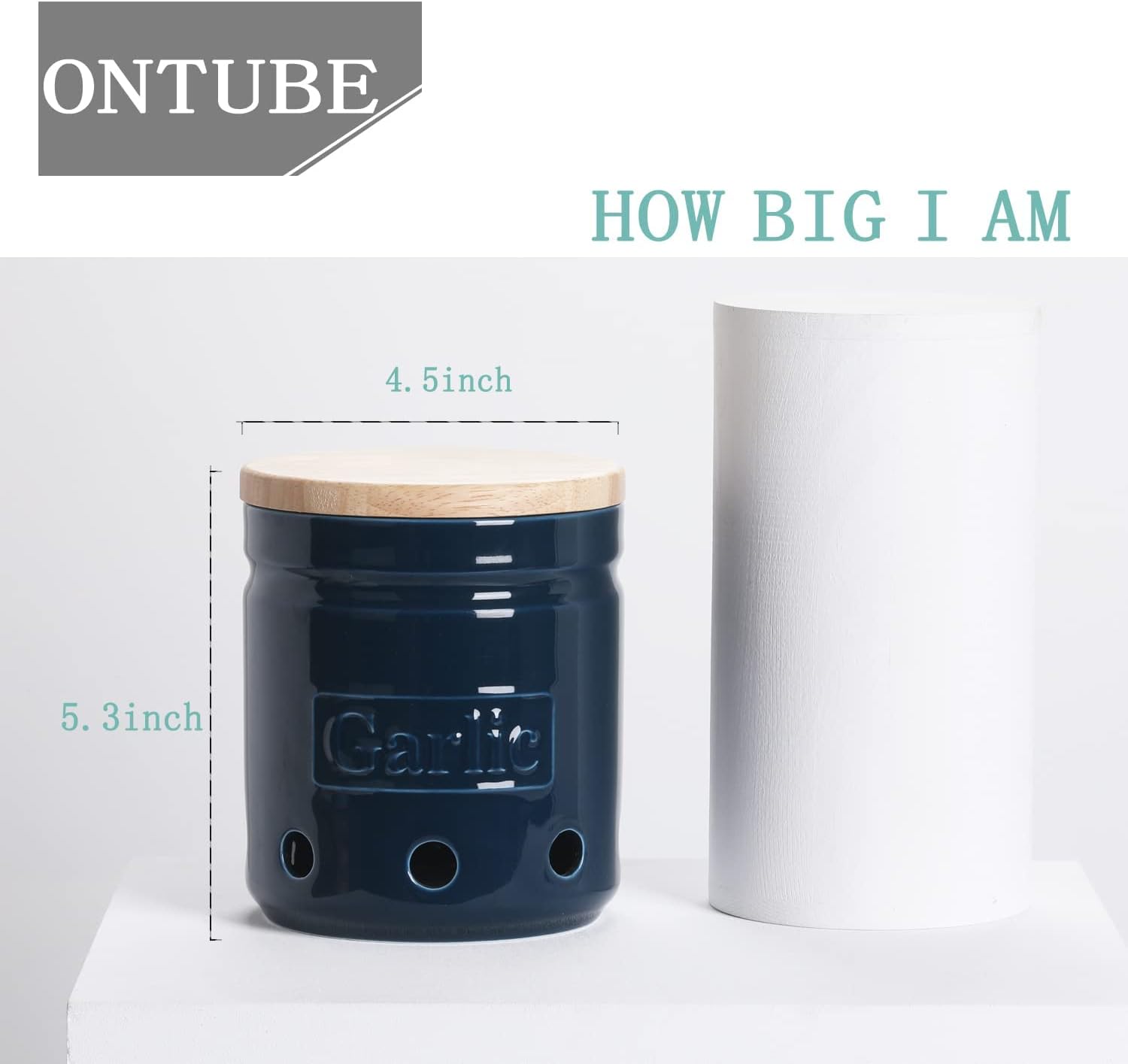 - HUMANIZED DESIGN : ONTUBE Garlic Keeper's size is 4.5"Lx4.5"Wx5.4"H which can easily hold 3 to 4 heads of normal size garlic. Because it is deep enough, it can even hold 2 potatoes
