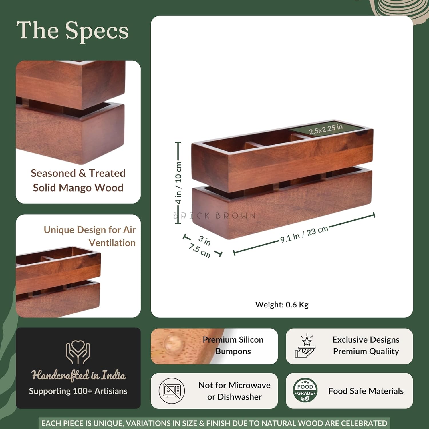 - Dimension: 9.1x3.9x3 Inch | Color: Mahogany | Weight: 1.1 Pound | Material: Solid Wood || Assembly Information: No assembly required.