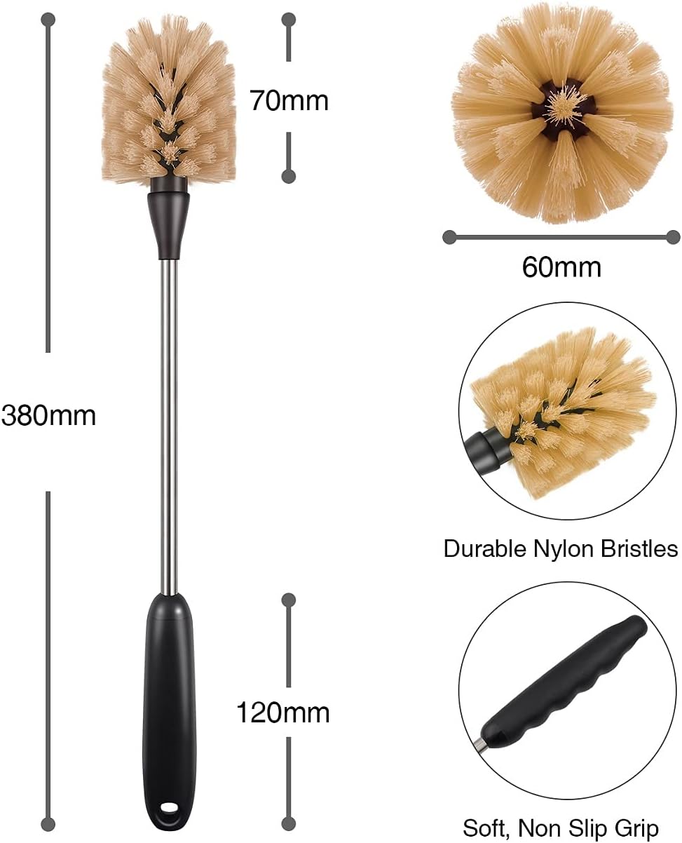 - β EXTENDED HANDLE: Rubber-covered handle and ergonomic grooves are designed with comfort features.The 14.9-inch extended cleaning brush is designed to reach the bottom of the bottle for an easy deep clean.