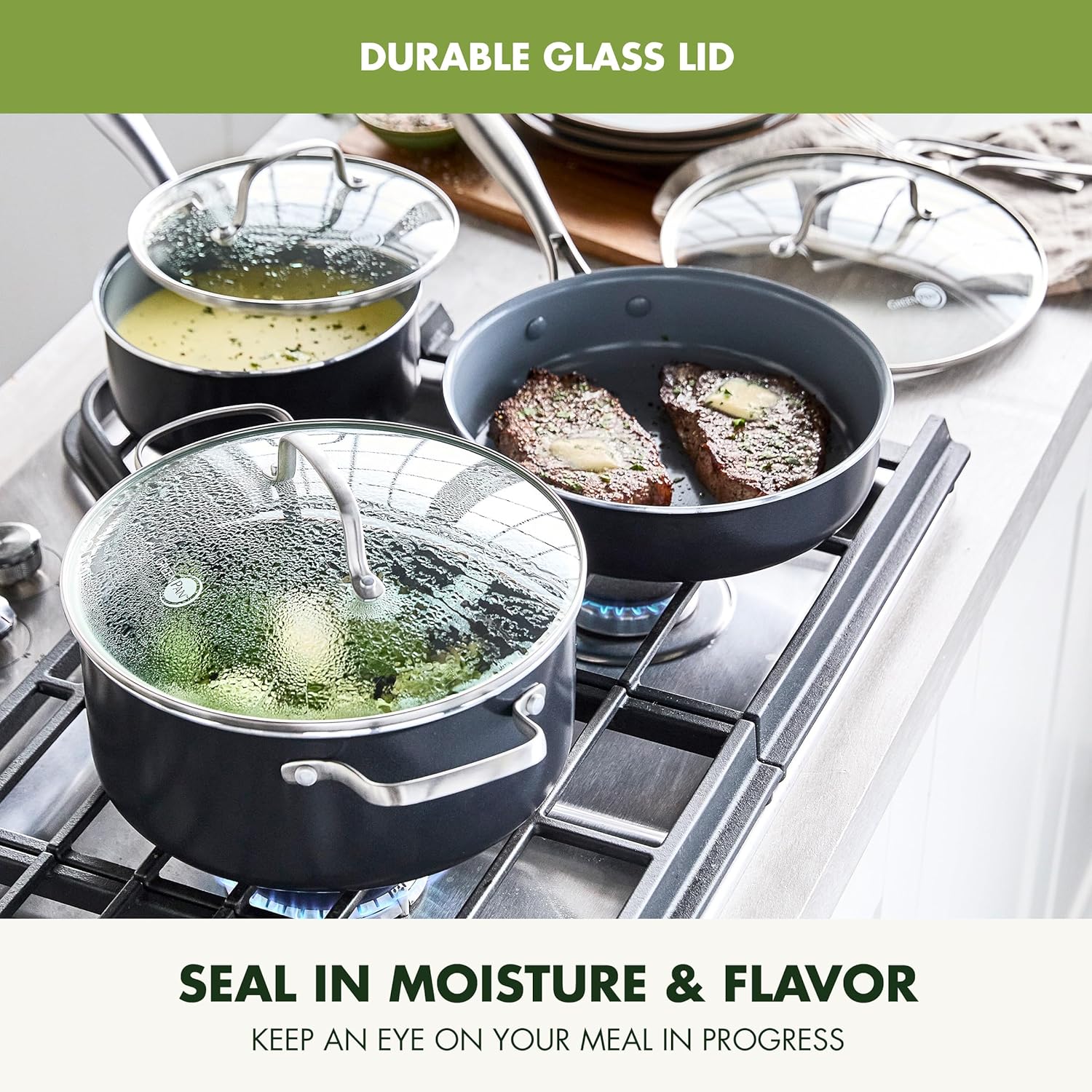 - ENJOY THE VIEW: The tempered glass lids keep heat and moisture inside so you can watch all the action on the outside