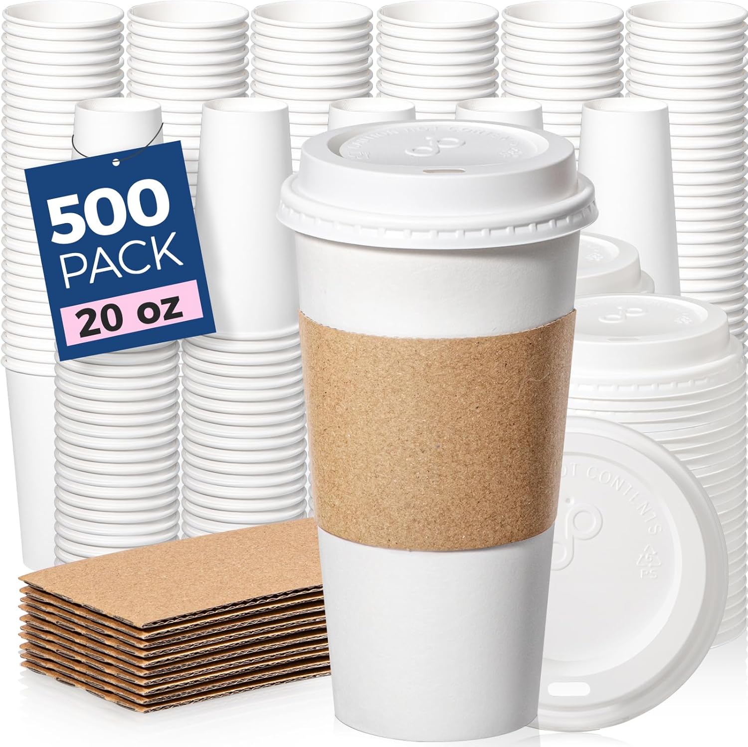 Fit Meal Prep 500 Pack 20 oz Disposable Coffee Cups with Lids, Sleeves, Leak-Proof To Go Coffee Cups with Lids, Durable Hot Paper Cups for Home, Office, Party, Business