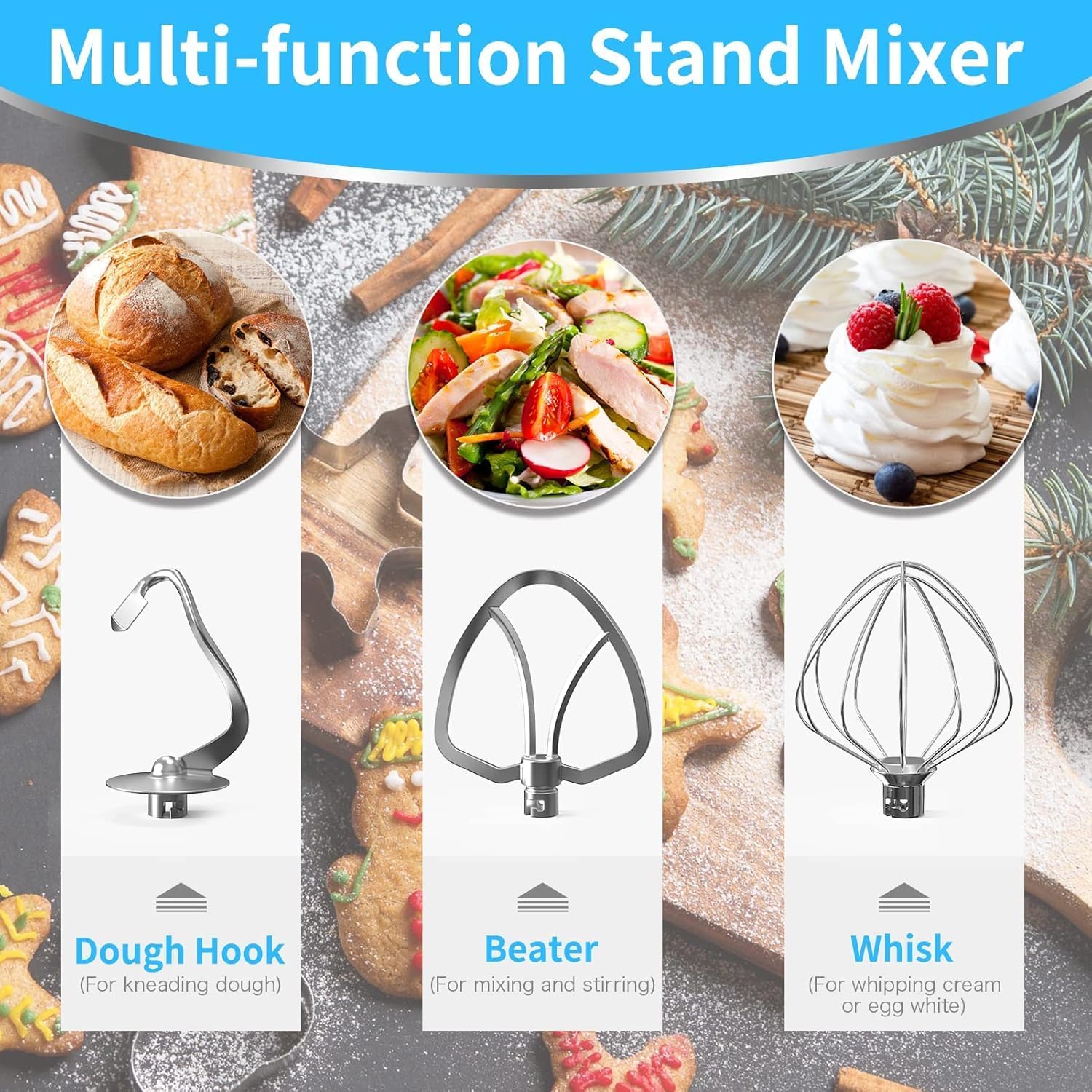 - 9-in-1 KITCHEN MACHINE - Vospeed kitchen stand mixer is a multi-functional food processor. It is equipped with a dough hook, whisk, beater, juice blender, meat grinder! It’s a perfect kitchen helper for making cakes, bread, cookies, smoothies, juicer,salad, sausage, meat sauce etc. The splash guard helps to add ingredients without making a mess
