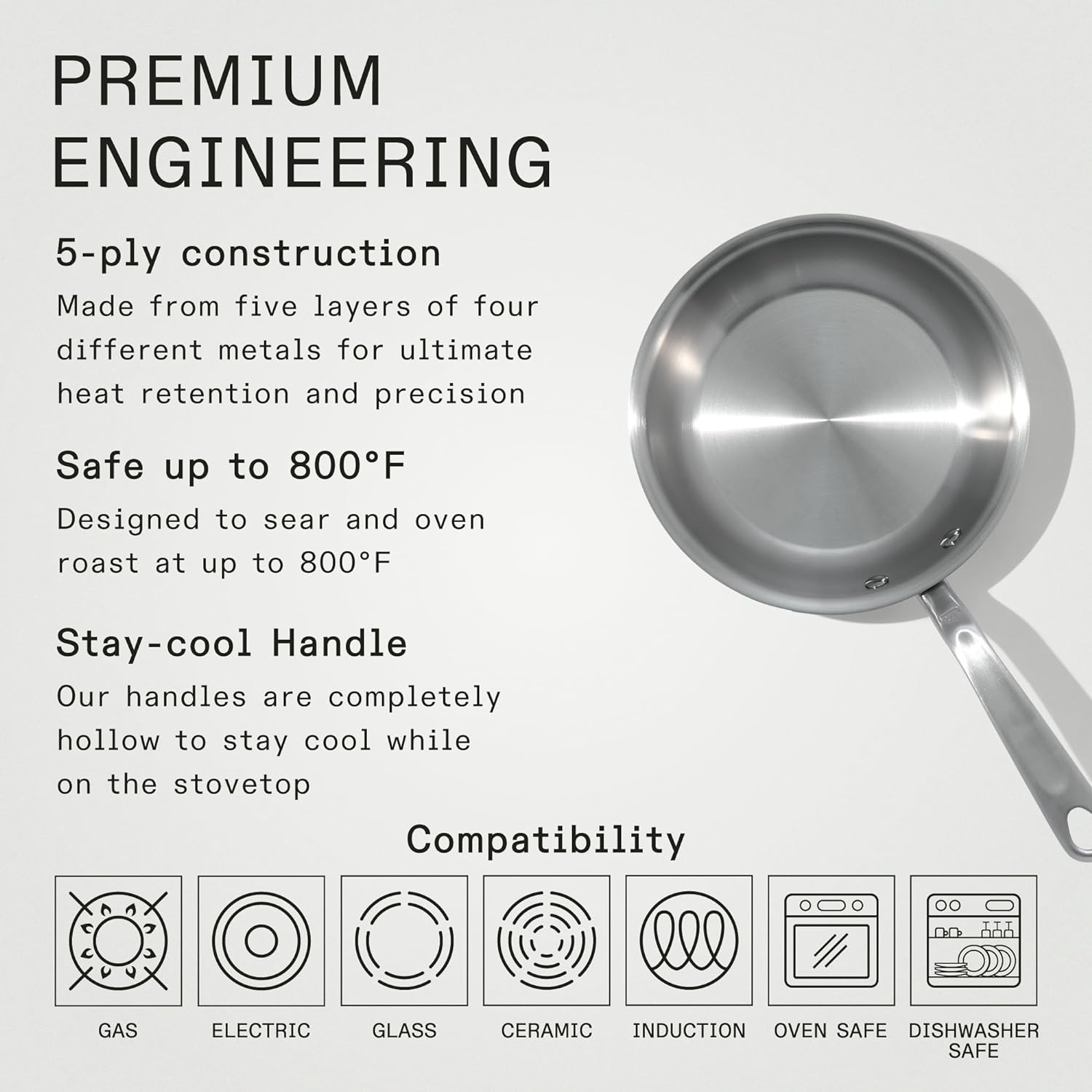 - Superior Quality - Made from 5 layers of premium metal for professional-quality heat distribution