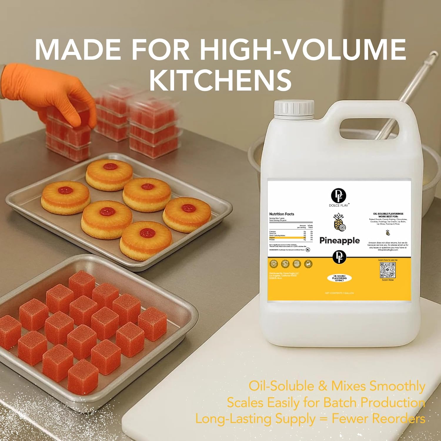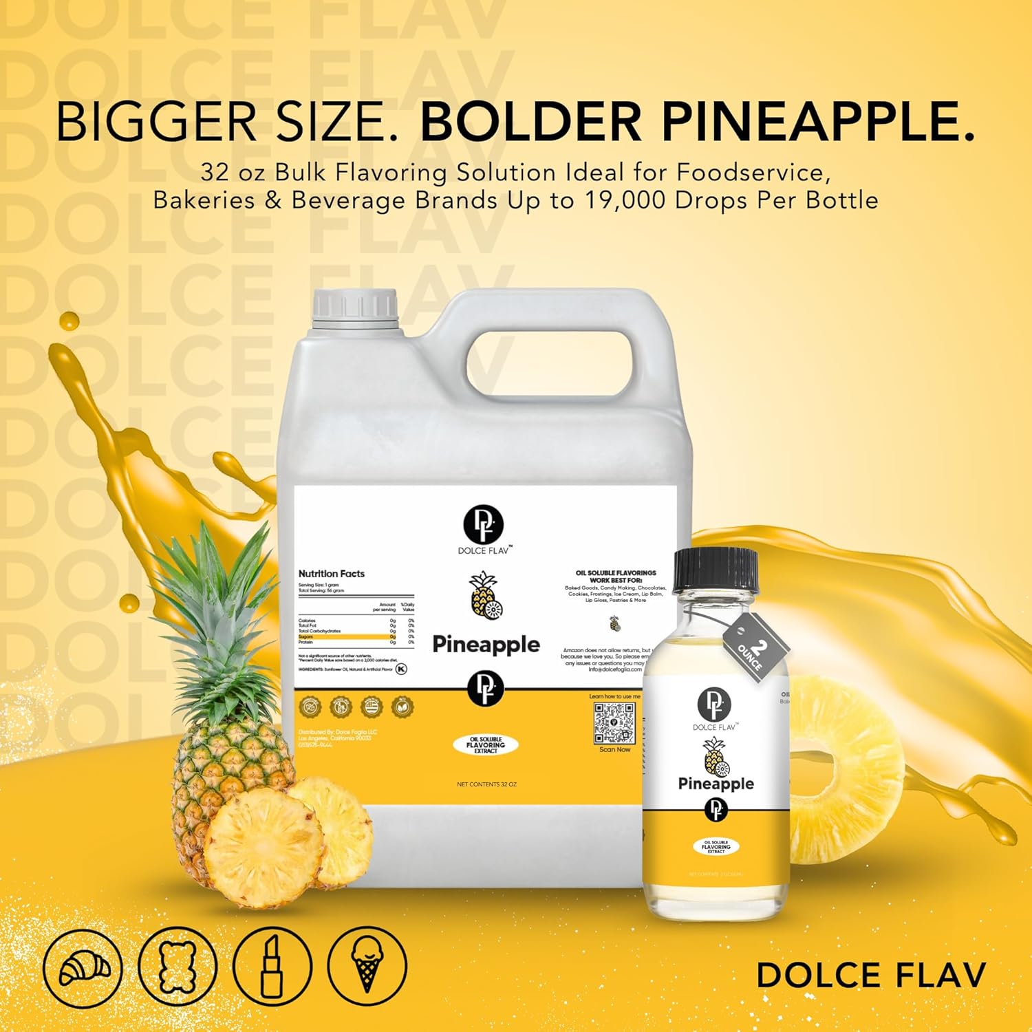 Dolce Flav Pineapple Extract – 1 Gallon Oil-Soluble Kosher, Sugar-Free, Concentrated Tropical Flavor for Candy, Chocolates & Desserts, Includes Measured Dropper