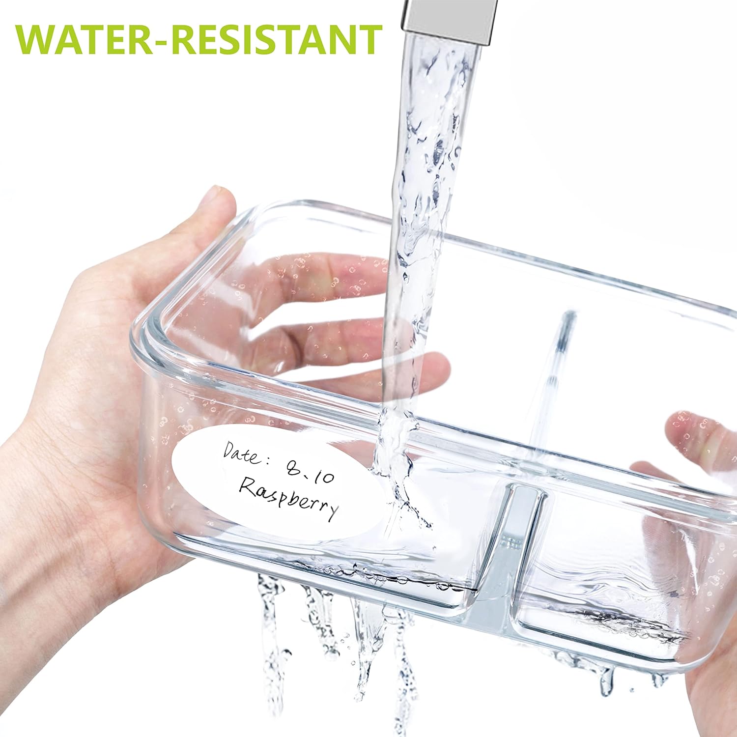 - Practical Design: 500 pcs oval white freezer stickers. Water/Oil resistant and aligning in an easily distributed roll with perforation line, easy to peel off and hand out. Self-Adhesive stickers stick great on food containers and plastic bags.