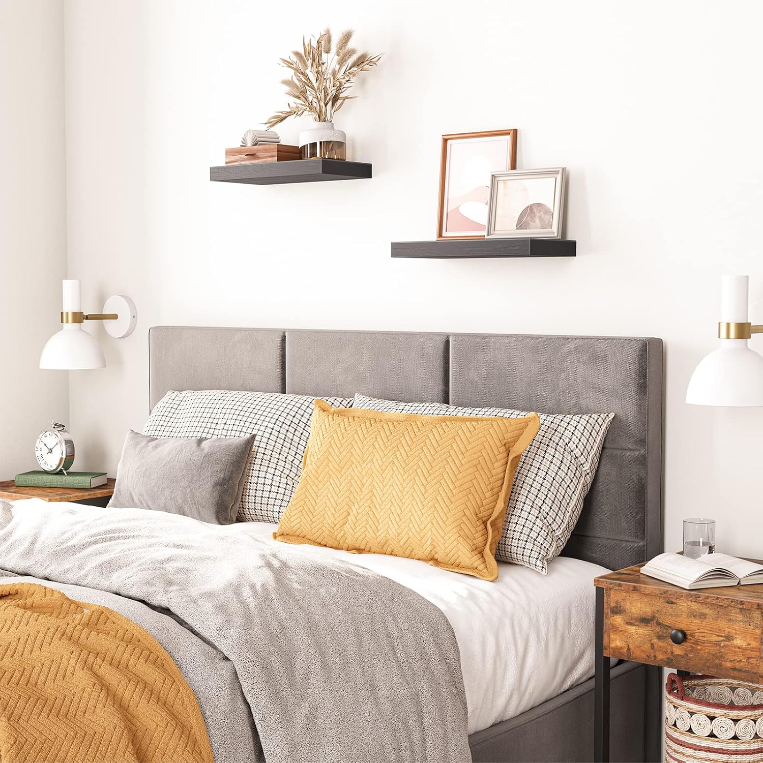 - Random DIY: Place them randomly according to your preference, such as right-left form, upper-lower form and ladder-like form. More and better patterns can be designed by using more wall mounted shelves. With them, you could design your unique stylings and highlights wall decor in compact spaces