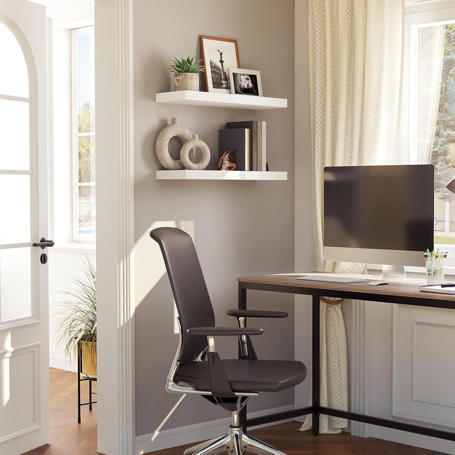 HOOBRO Floating Shelves for Wall, Wall Mounted Shelf Set of 2, 23.6" Hanging Shelf with Invisible Brackets, for Wall in Bathroom, Bedroom, Toilet, Kitchen, Living Room, Office, White WT60BJ01