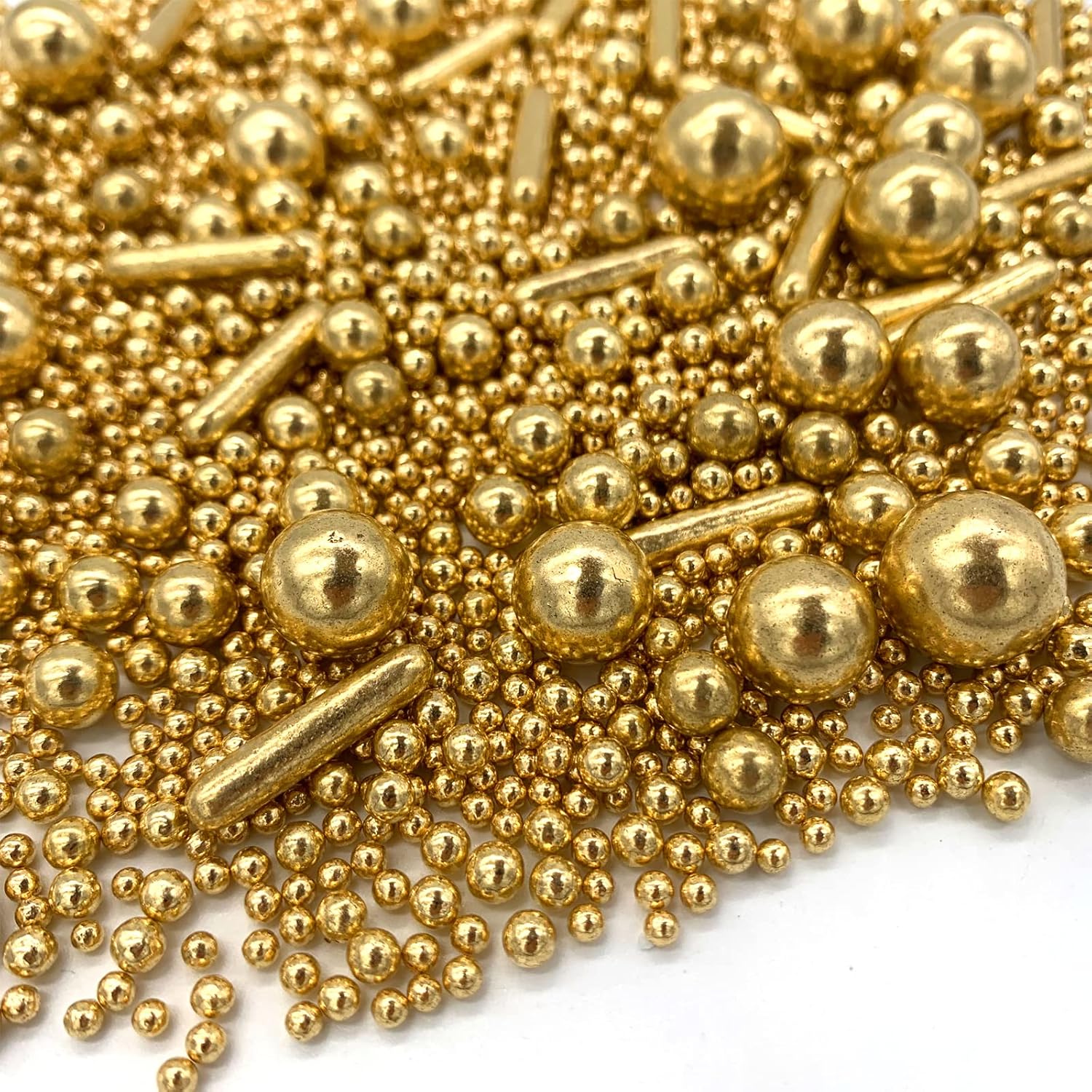 - Package includes :1 bottle gold pearl sugar sprinkles candy ,4.2oz/120g.Ingredients: Sugar, Beet Root, Spirulina, Carnauba Wax,Gluten free,Nut free