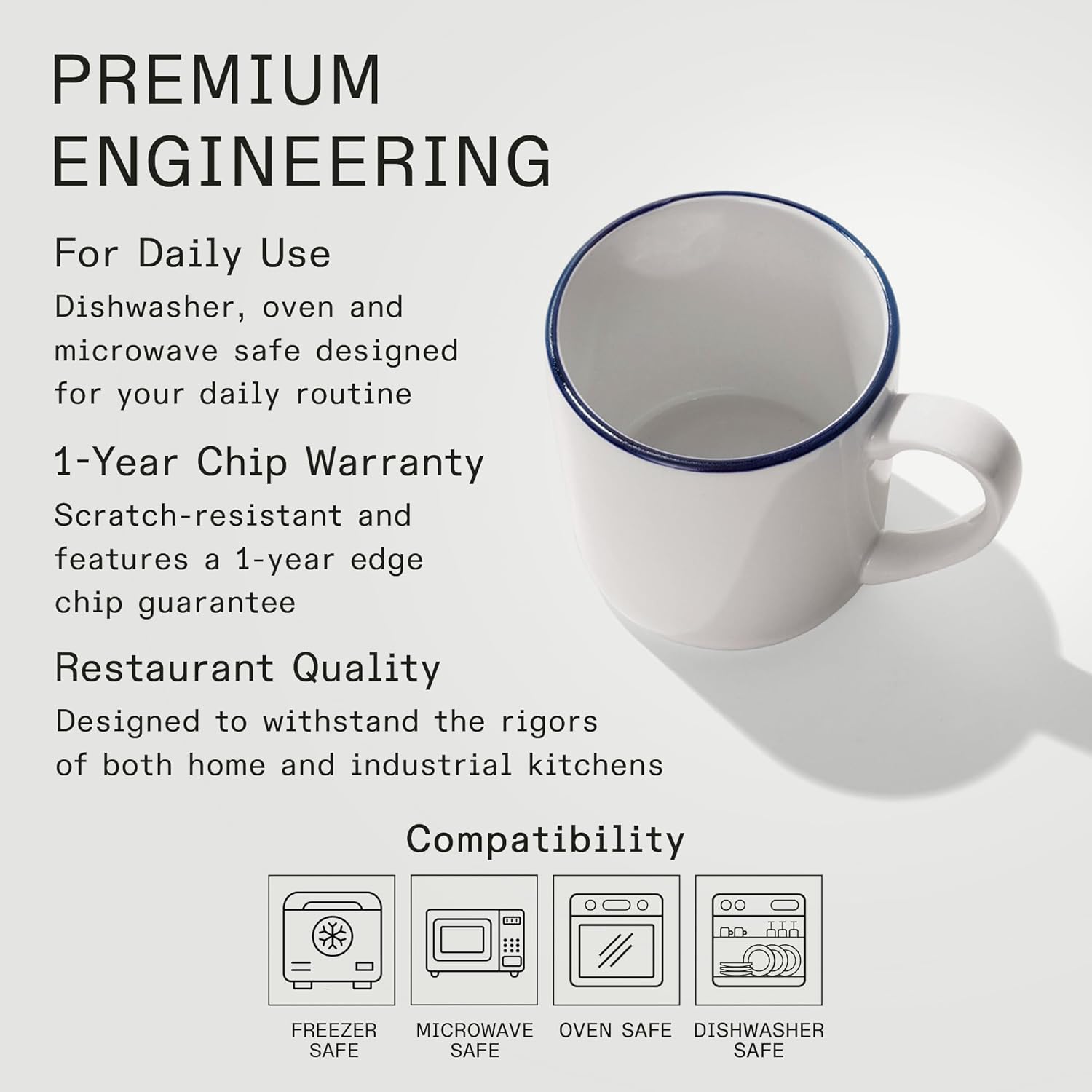 - Durable Design - Made from high alumina vitrified china, these mugs are scratch and thermal-shock resistant