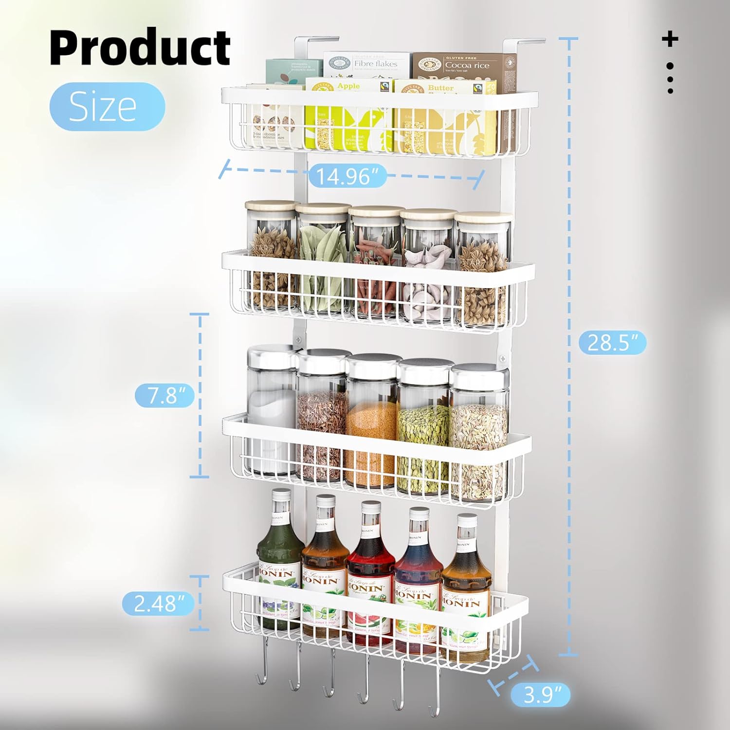 Warome Magnetic Spice Rack for Refrigerator, 4 Tier Shelf Organizer with Strong Magnets, Kitchen Storage Gadget with Utility Hooks