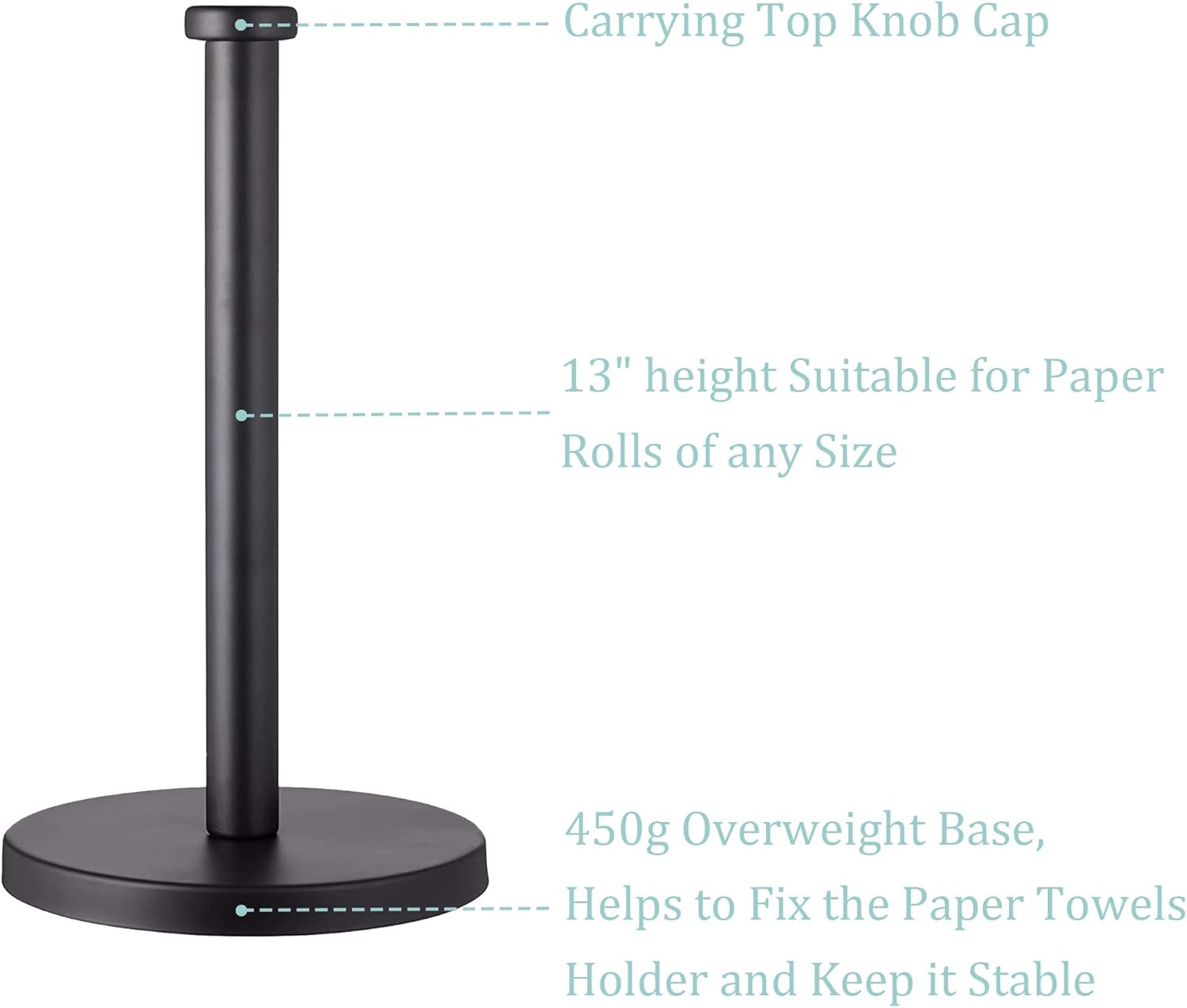 - 【Protect your Desktop】 - The base has a non-slip pad to prevent the paper towel holder from moving out of place. Also, it keeps your table top free from scratches.