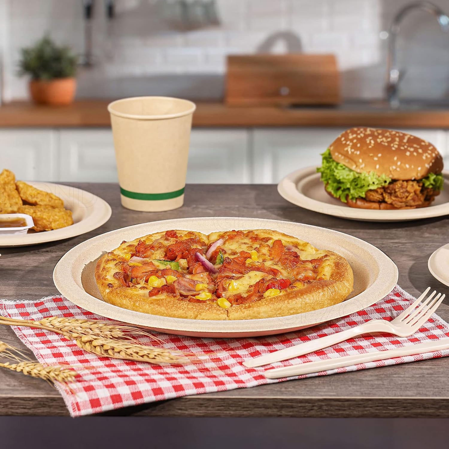 - 【Sturdy and Durable】These 10 inch paper plates 100% tree-free. No plastic or wax lining, unbleached, dye-free, gluten-free, BPA-free, cut, and oil resistant. Great for serving hot or cold