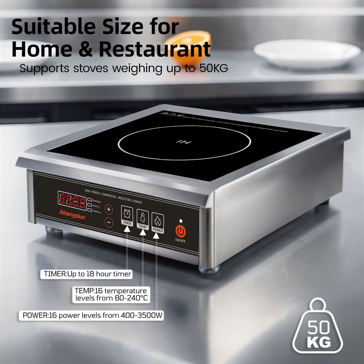 - 【Fast and Safe Cooking】:This commercial induction cooktop with a maximum power of 3500W (240V/15A). It features second-generation technology with high-power for fast heating and low-power for keeping warm. The 18-hour timer supports long cooking times like simmering soups. It heats faster than typical electric stoves, hot plates, ovens, or cooktops.