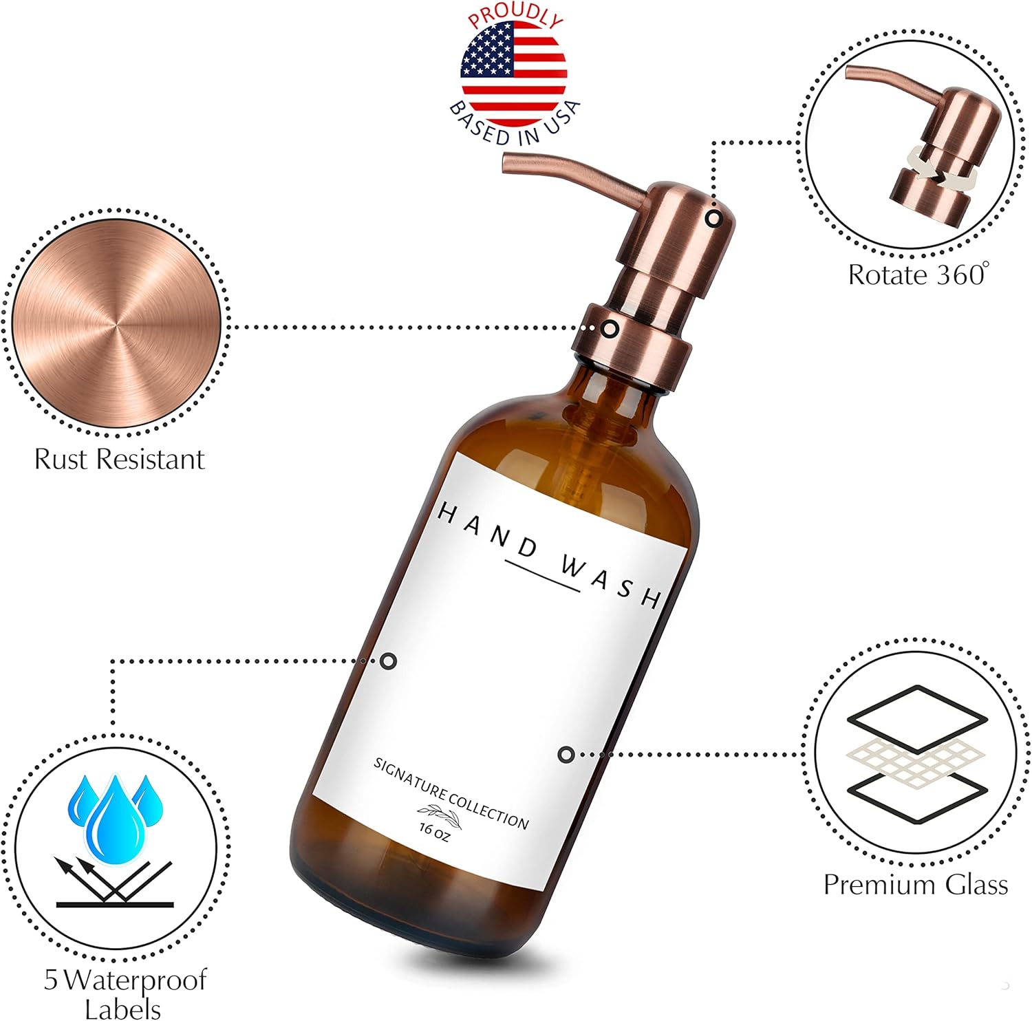 - ✅ 2-in-1 COMBO: Upgrade your home with our glass soap dispenser set. The dish soap dispensers are crafted from the highest quality glass and can be used as soap dispensers for kitchen sinks, soap dispensers for bathrooms, or as hand soap dispenser of your favorite liquid. The kitchen soap dispensers come with 2 dish soap dispensers for kitchen bottles (16 ounces), 2 stainless steel pumps, and 5 waterproof labels. Our selection includes colors including amber, clear, white, and black.