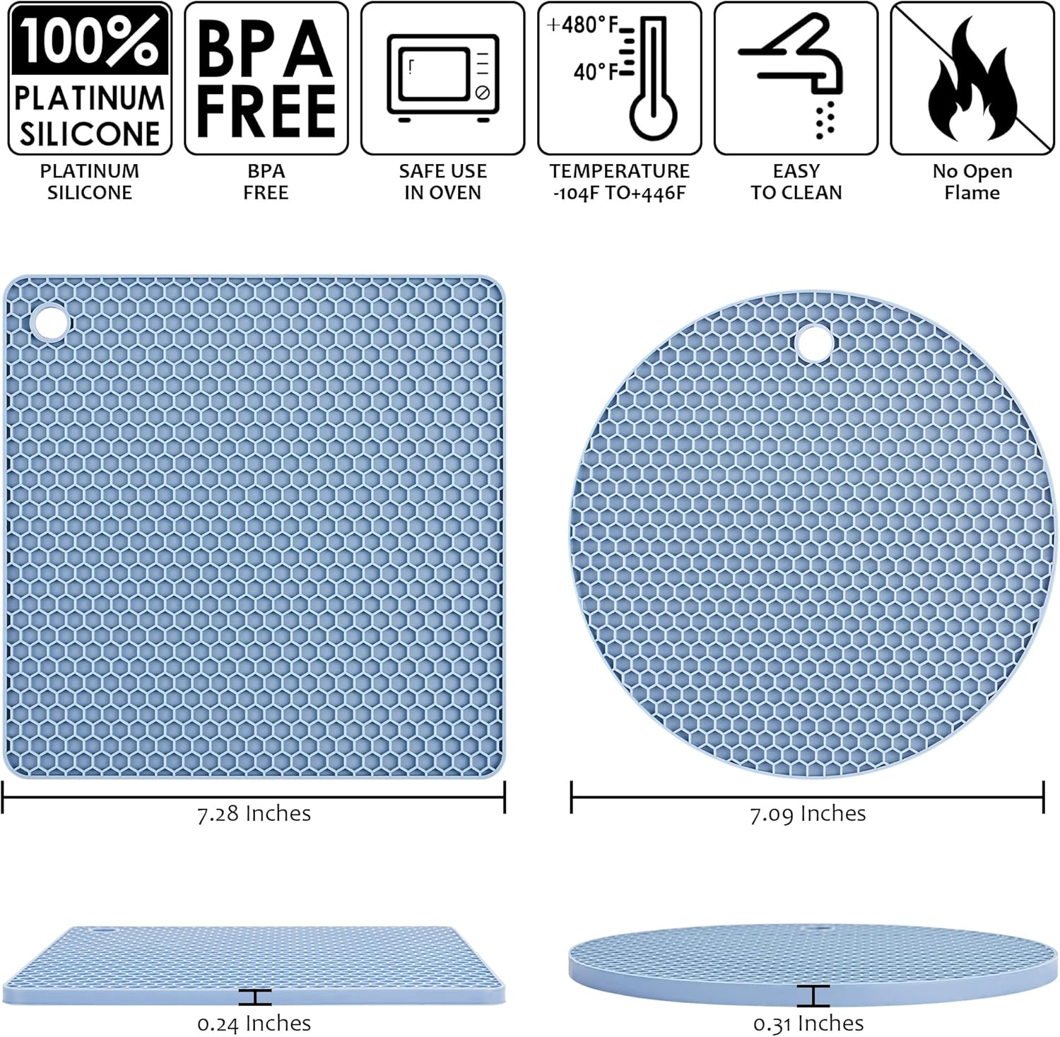 Silicone Trivets for Hot Dishes, Silicone Pot Holders for Tabletop, Trivet Mat Hot Pads for Kitchen, Trivets for Hot Pots and Pans, Heat Resistant Mats for Quartz Countertop Pad Set 4 Blue
