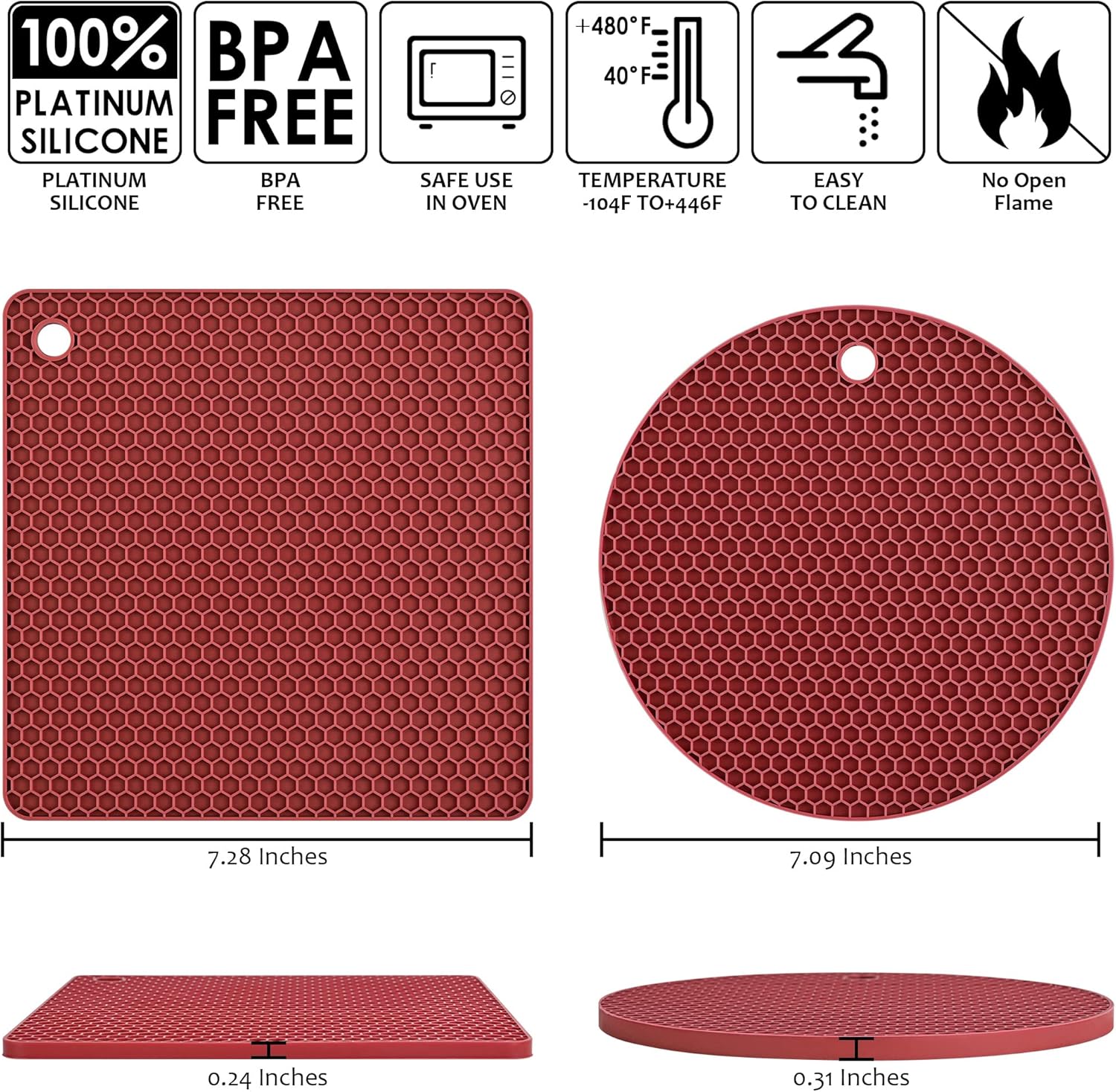 Trivets for Hot Dishes, Silicone Pot Holders for Tabletop, Trivet Mat Hot Pads for Kitchen, Trivets for Hot Pots and Pans, Heat Resistant Mats for Quartz Countertop Hot Pad Mat Set 4 Burgundy
