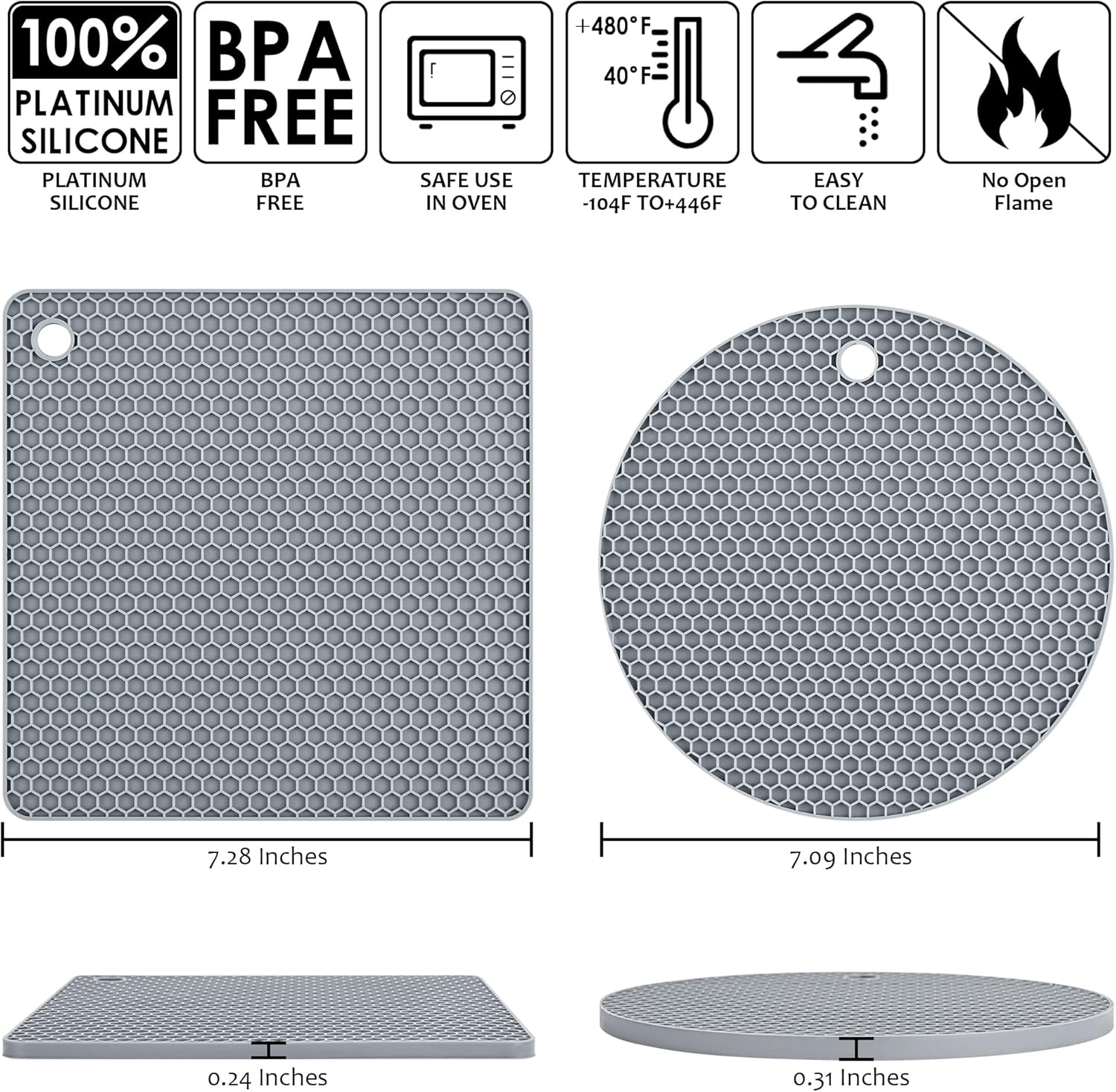 Silicone Trivets for Hot Dishes, Silicone Pot Holders for Kitchen, Trivet Mat Hot Pads for Kitchen, Trivets for Hot Pots and Pans, Heat Resistant Mats for Quartz Countertop, Set 4 Light Gray