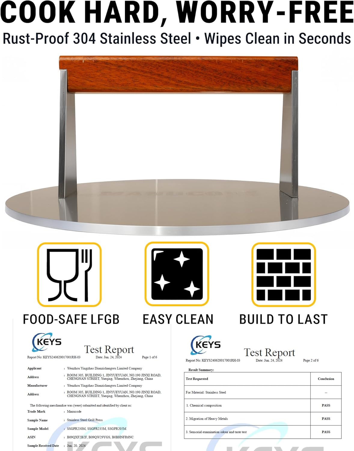 - SAFETY FIRST IN THE KITCHEN: Our griddle press features an extended anti-rotation wooden handle, keeping you cool and safe even during long cooking sessions